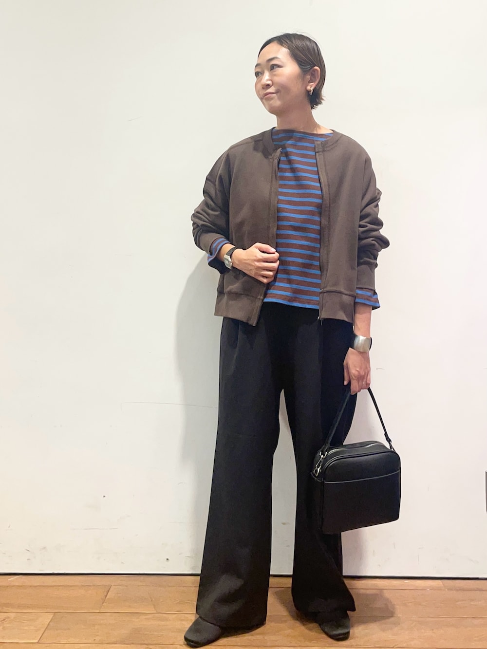 カーディガンはスウェット素材で、長いシーズンでお使いいただけます。