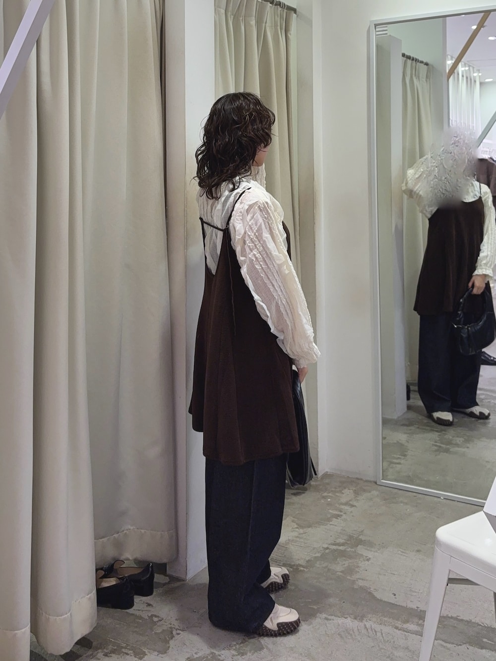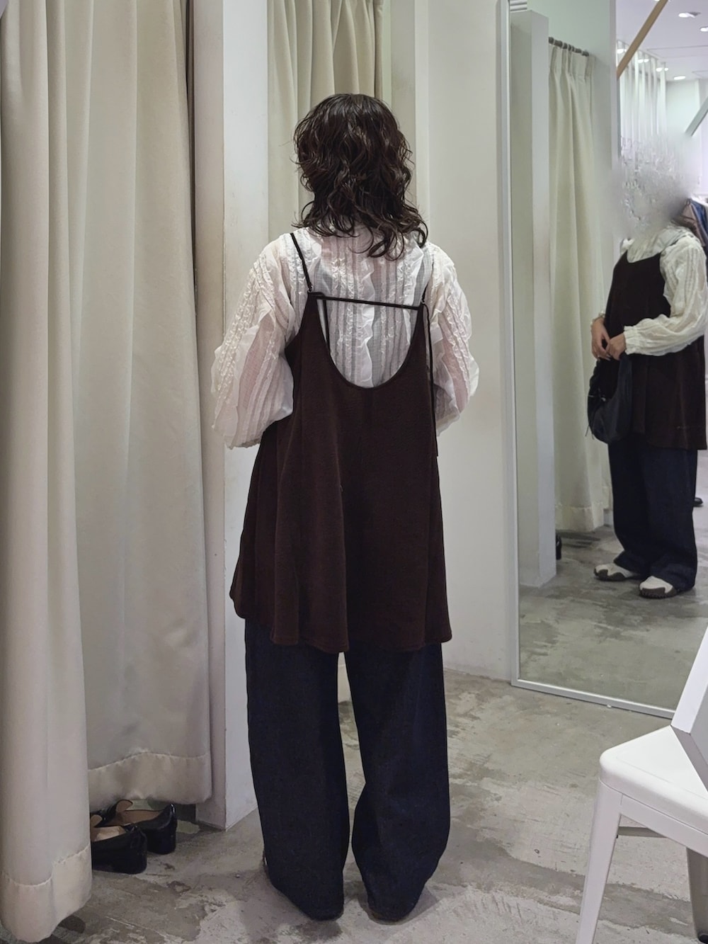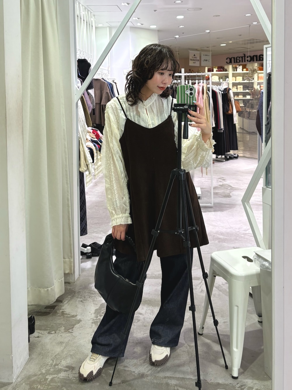 ボリュームのあるデニムパンツを合わせて、甘さを程よくカジュアルダウンしました!