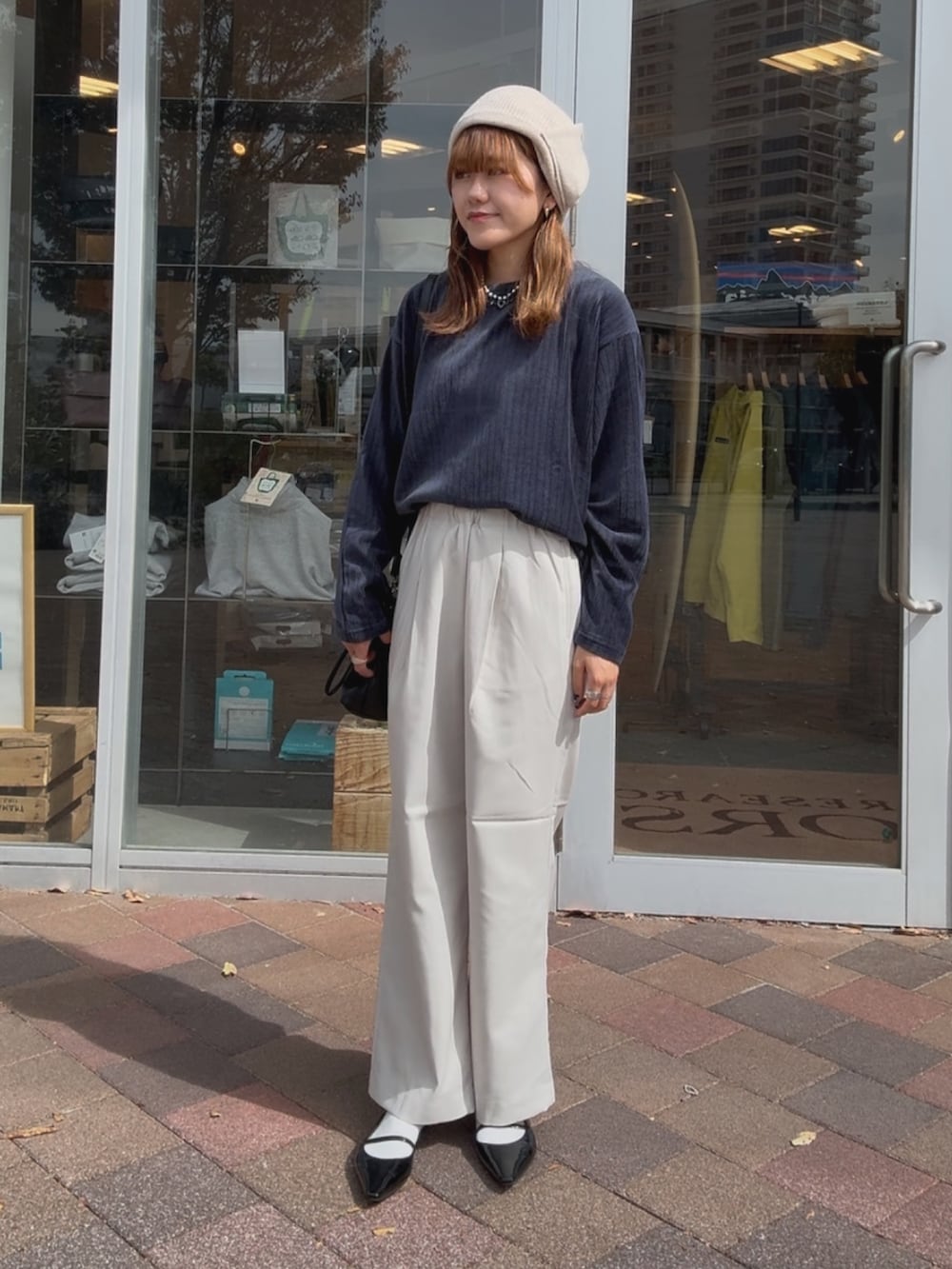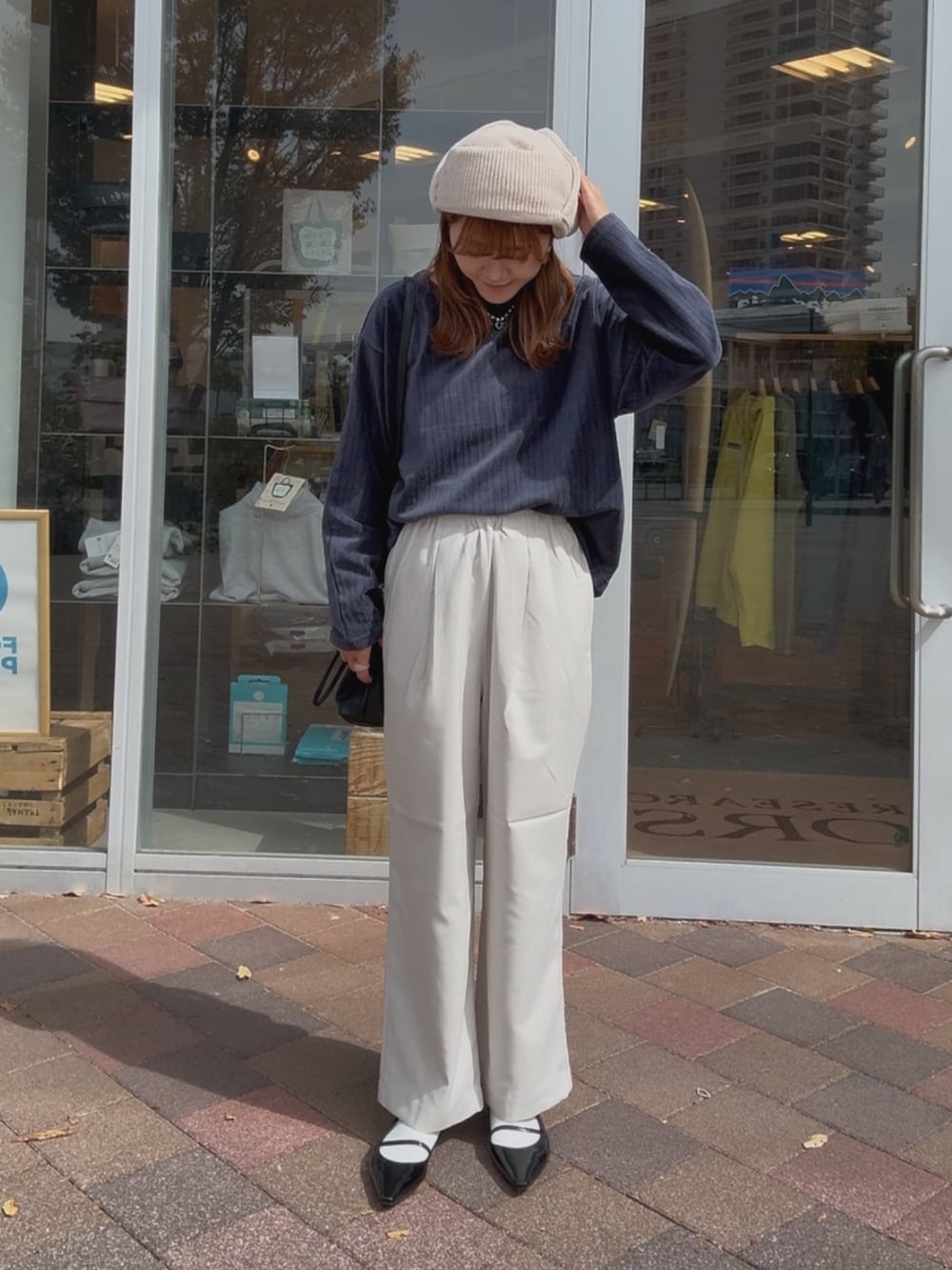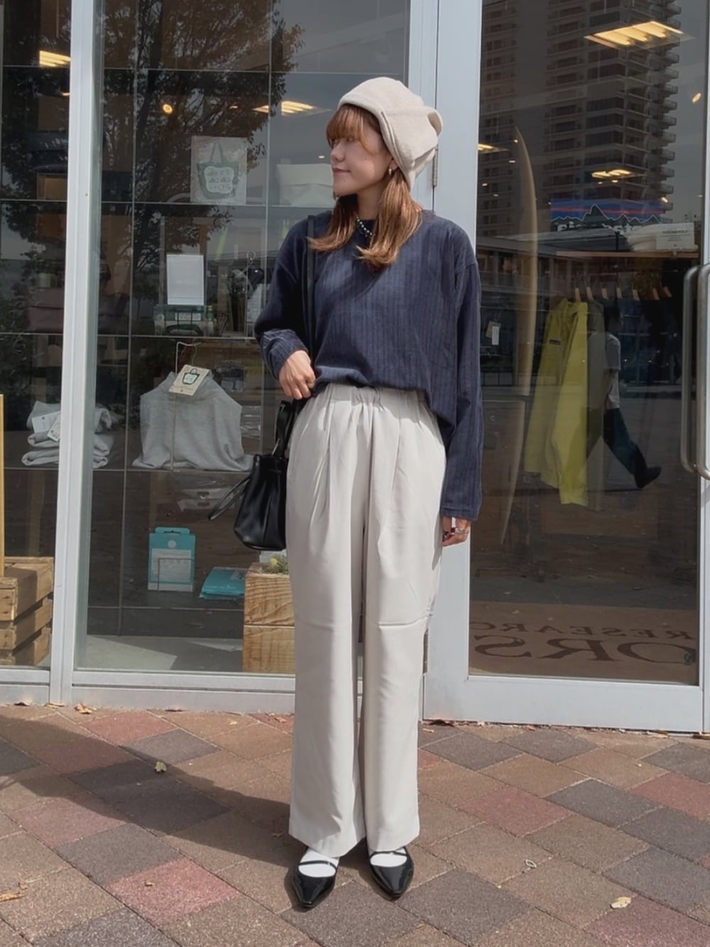 サイズ感はゆったりしてますが、ストライプのラインでスッキリ見えます◎