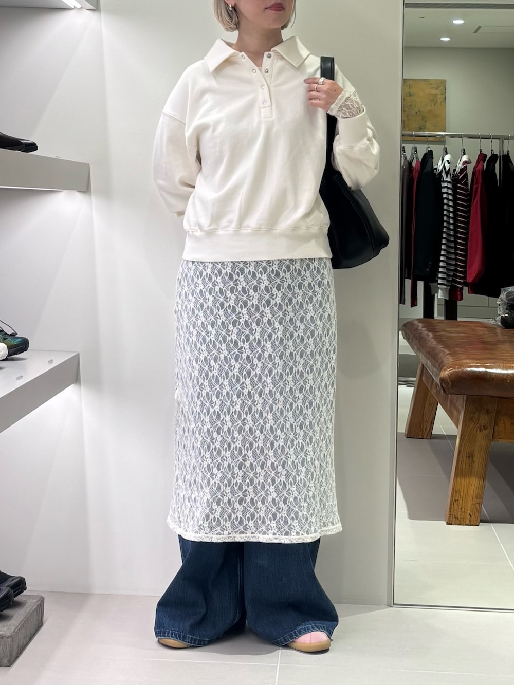 スウェット素材×シャツカラーで大人カジュアルなコーディネートにぴったりです。