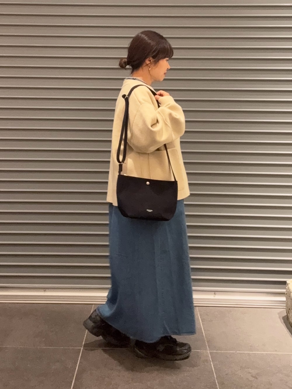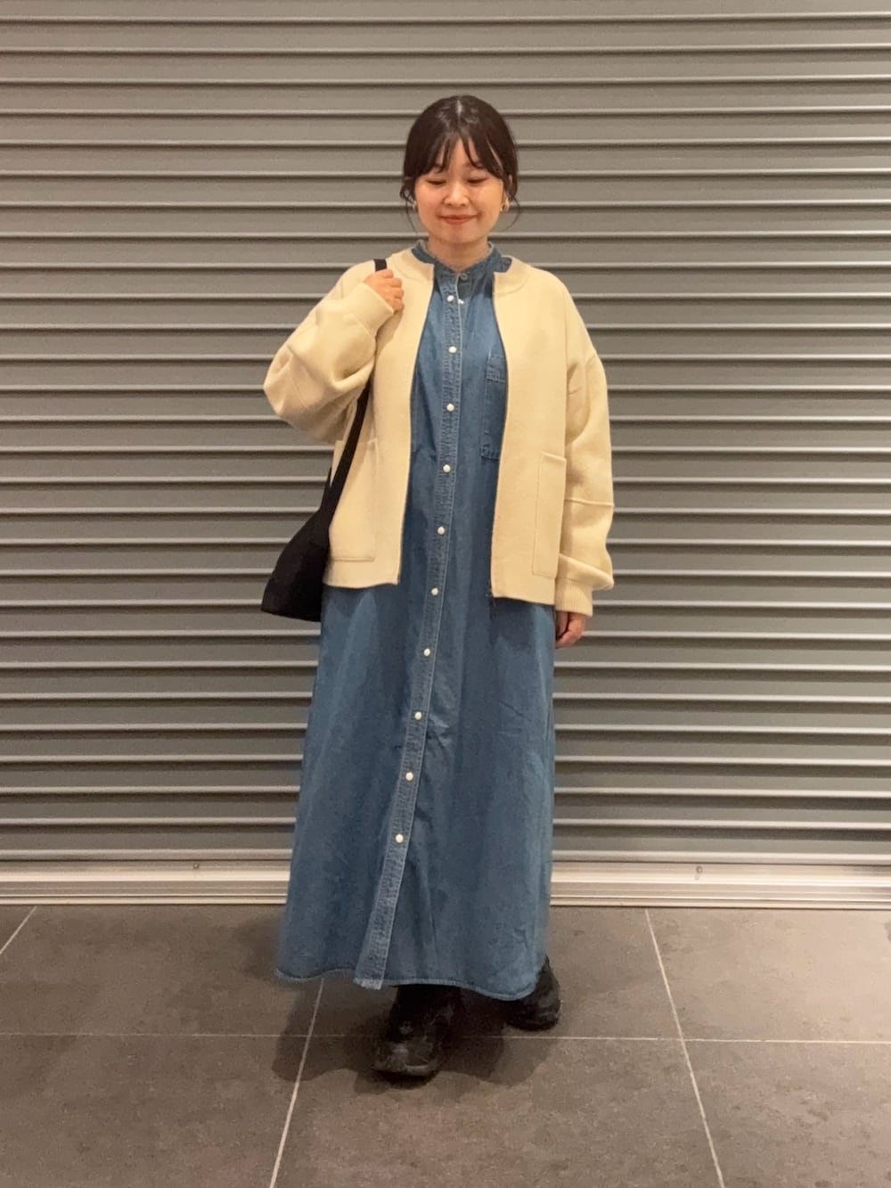 デニムワンピースは身長150cmでもくるぶし丈で着れます。ゆったりしてるので、冬は中にも着込めます。