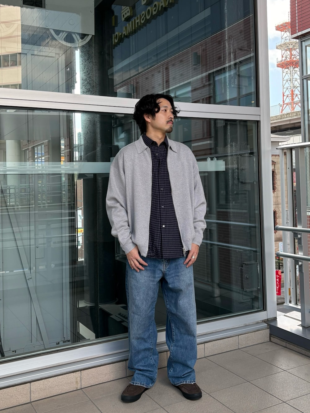 デニムと同系色にすることでカーディガンの明るさを引き立たせております。👖