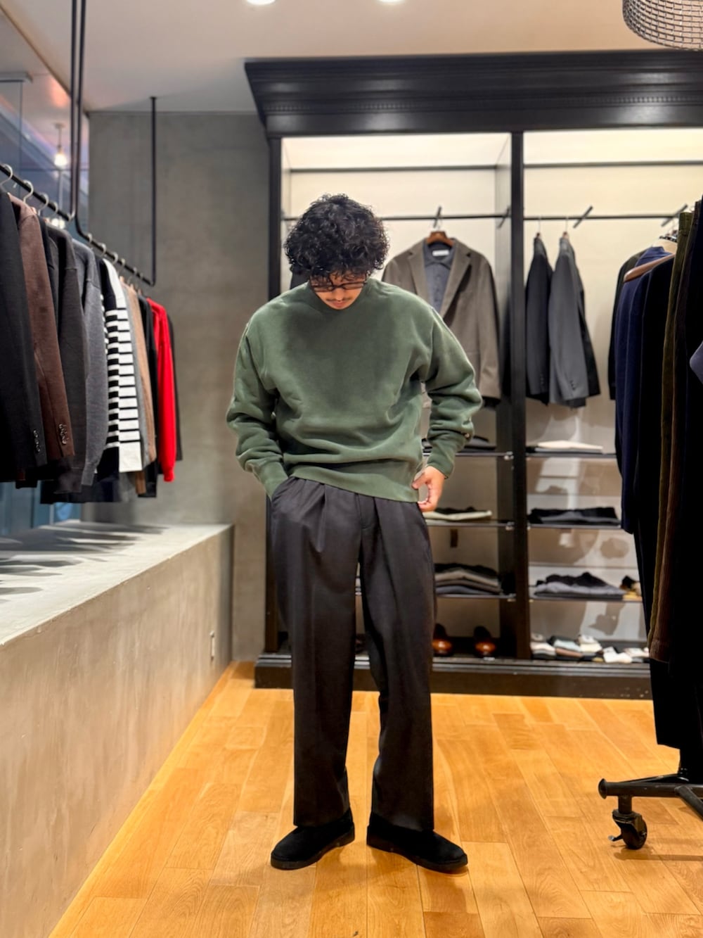 パンツはシルクの入った高級感のあるスラックスでキメてます!
