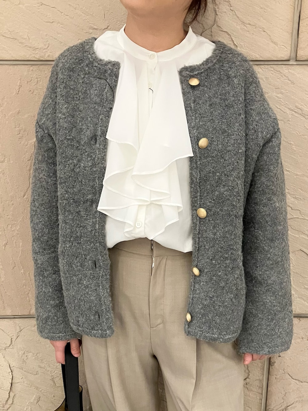 柔らかくさらっと羽織りやすいカーディガンです。ウール混なので今から真冬もコートの中に着用でき、シワにもならないので旅行などご予定にも便利です。