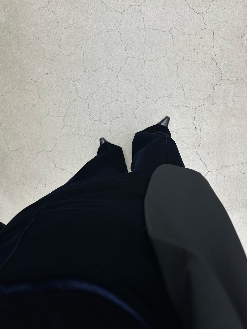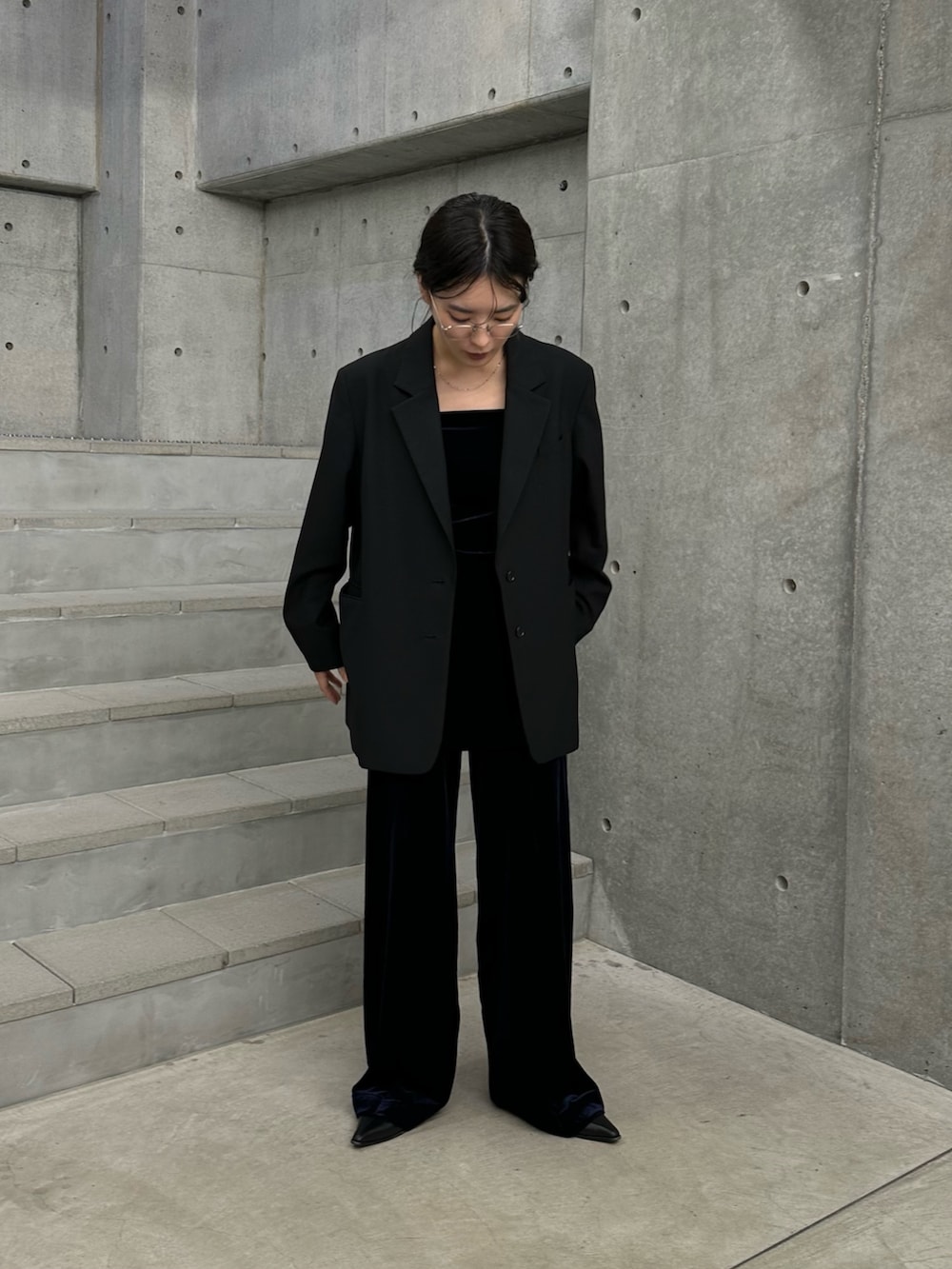 ストレッチの効く素材なので、さまざまな着こなしにマッチし、こう見えてストレスフリーな着心地です。パンツは丈が少し長めだったので、実際に着る時は私は丈詰めが必要そうな丈感でした。