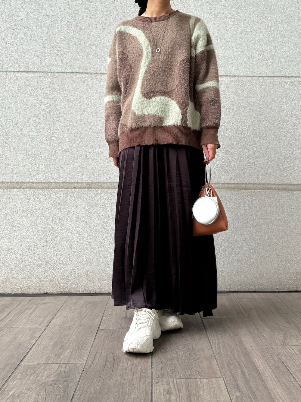 人気の柄ニットをスカートと合わせておしゃれなお出かけ秋コーデにしてみました🍂🎃