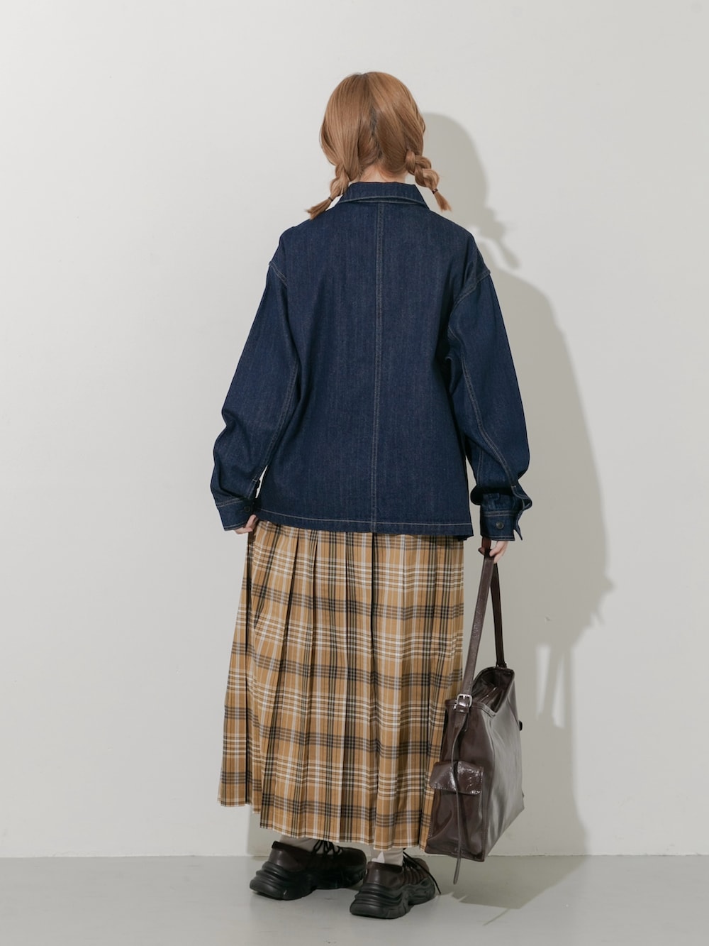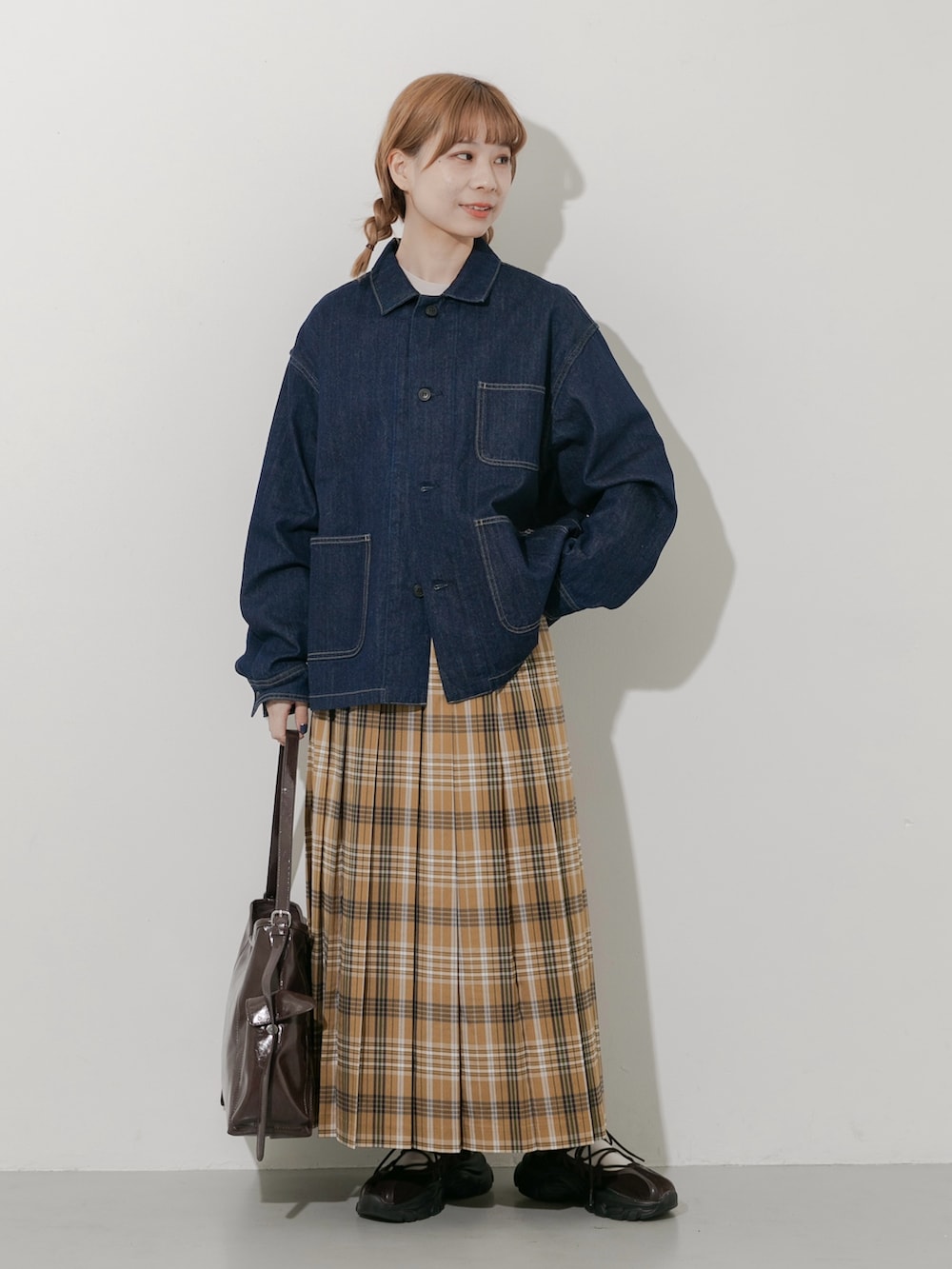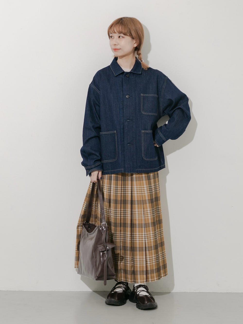 デニムのカバーオールはゆったりとしたサイズなので、重ね着すれば長い季節愛用できそうです◎
