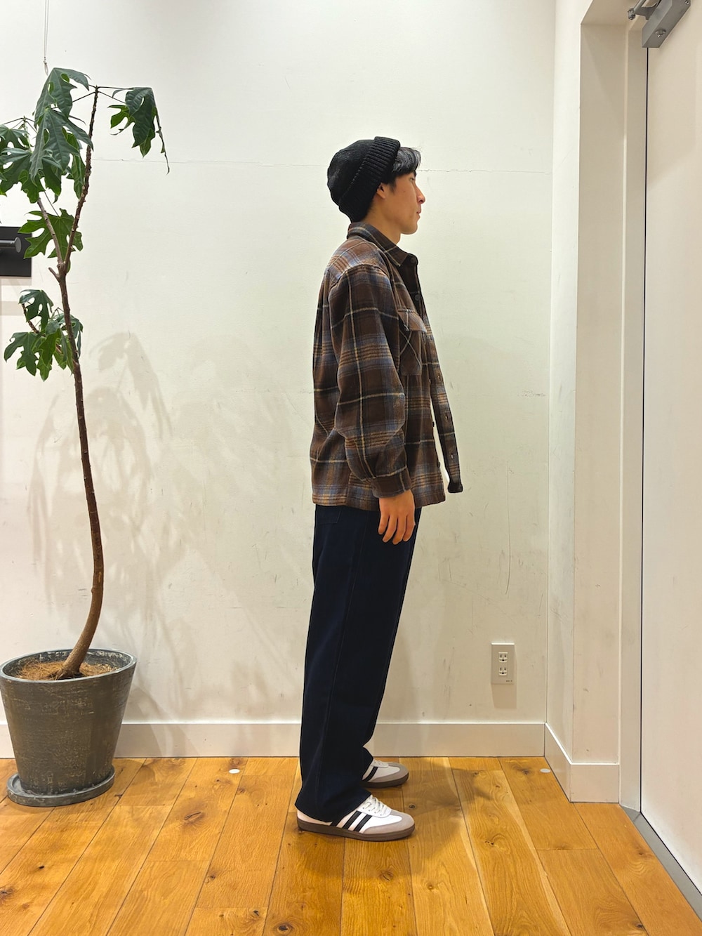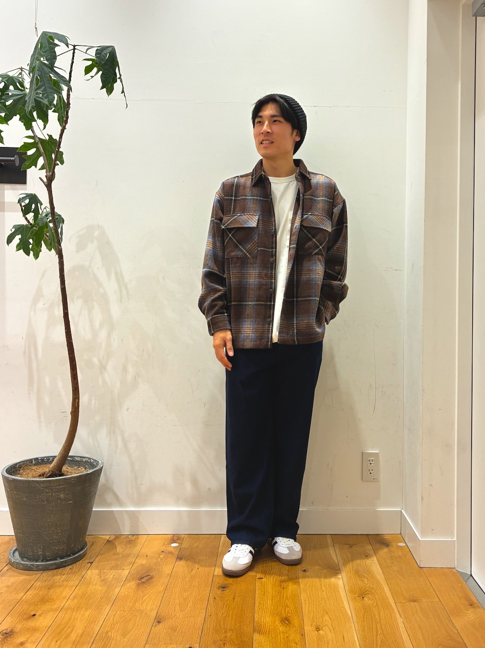 今回はアメカジ風コーデになっています!チェックシャツは分厚めの生地にポケットが2つ付いている物になっていてこれからの季節にとても暖かく着られる物になっています!パンツをジーンズにして靴を白にしたことで落ち着いた雰囲気を出してみました!