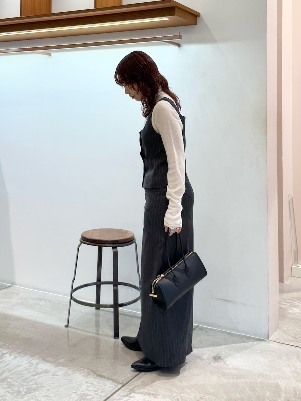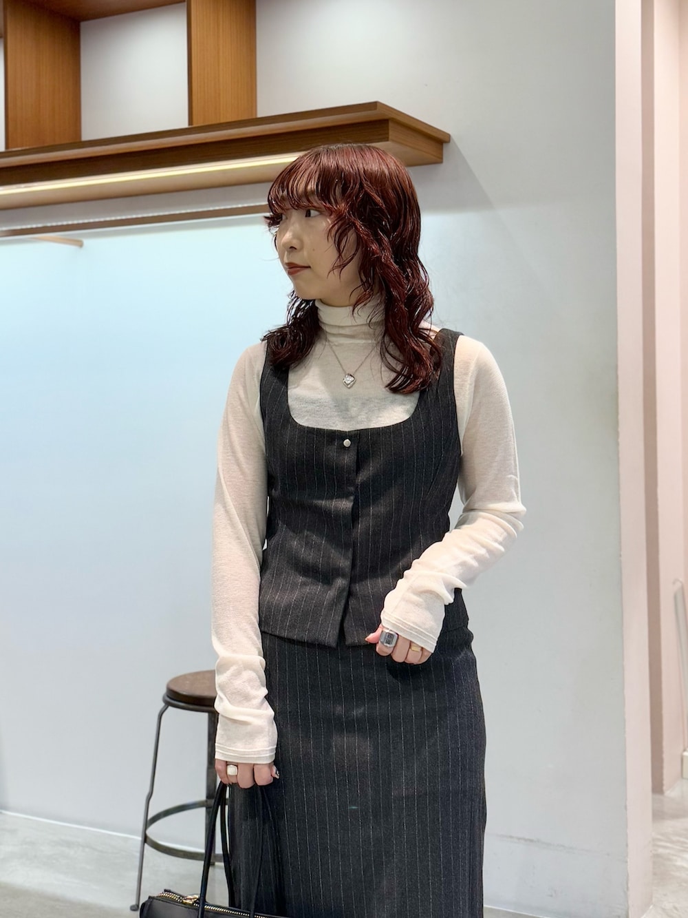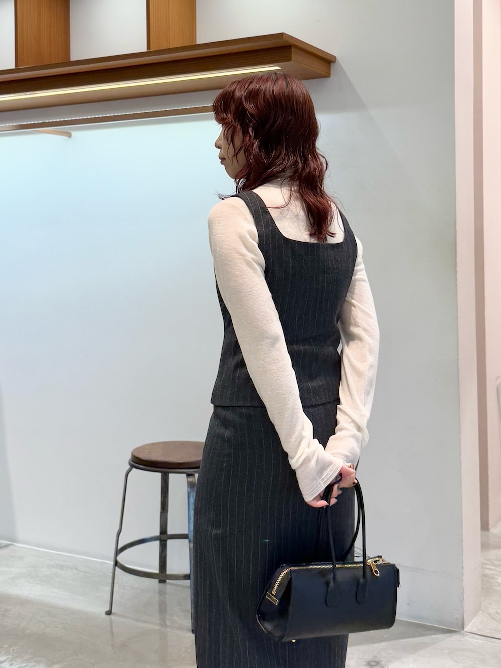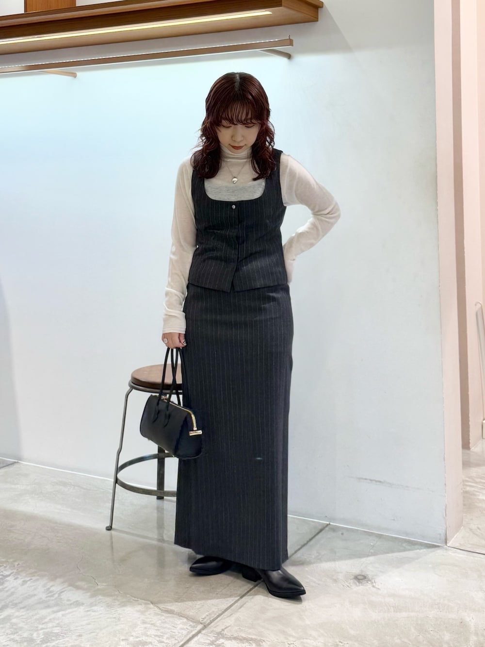スッキリシルエットなので、細身のニットを合わせております◎