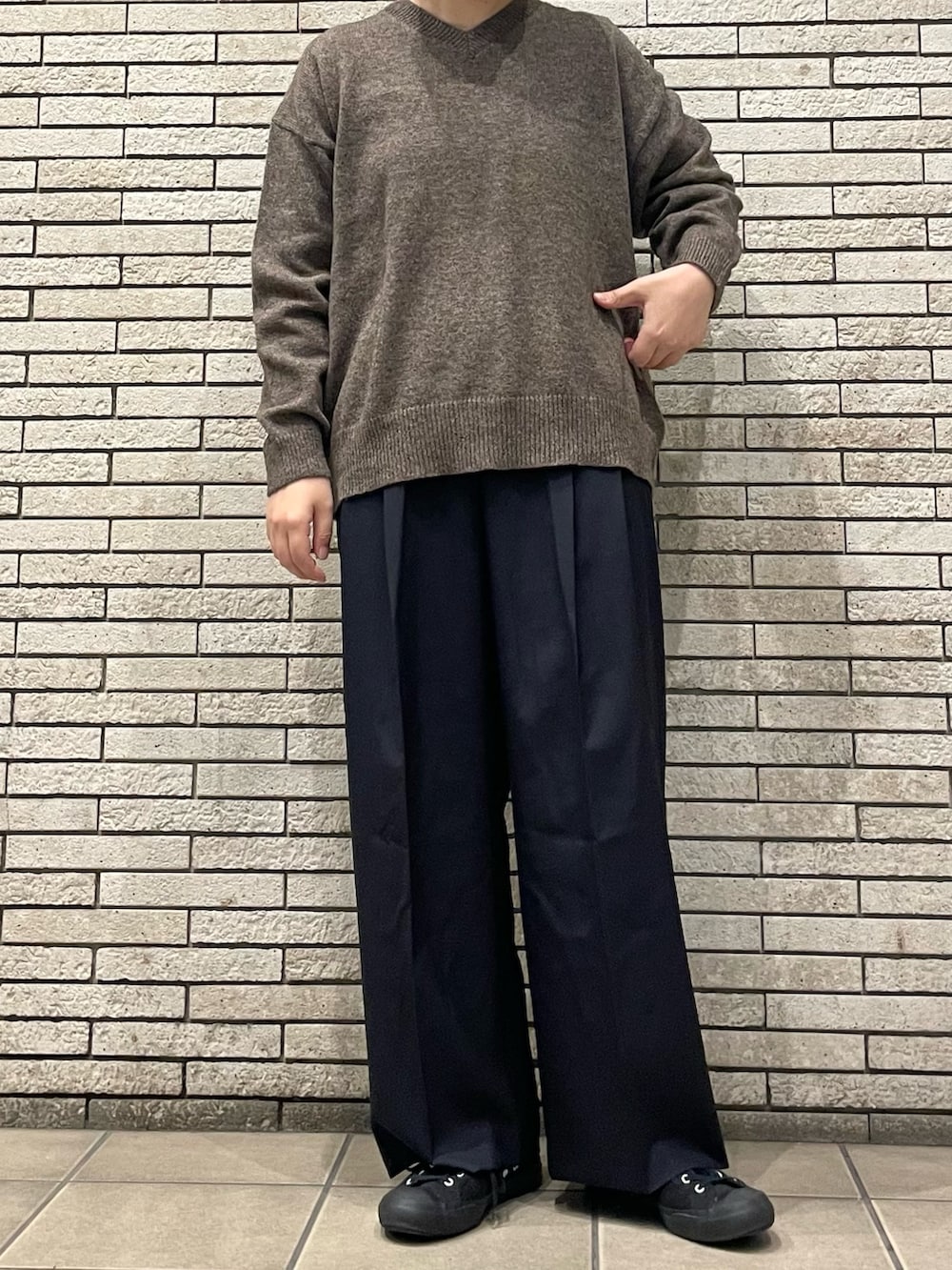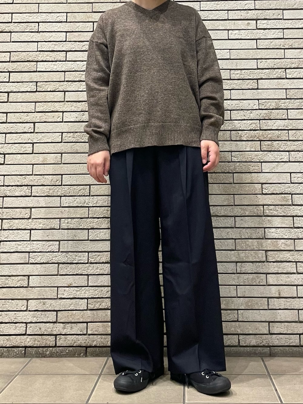 首元は開きすぎないVネックですっきりとした印象に。インナーにクルーネックTを合わせるスタイリングもおすすめです◎