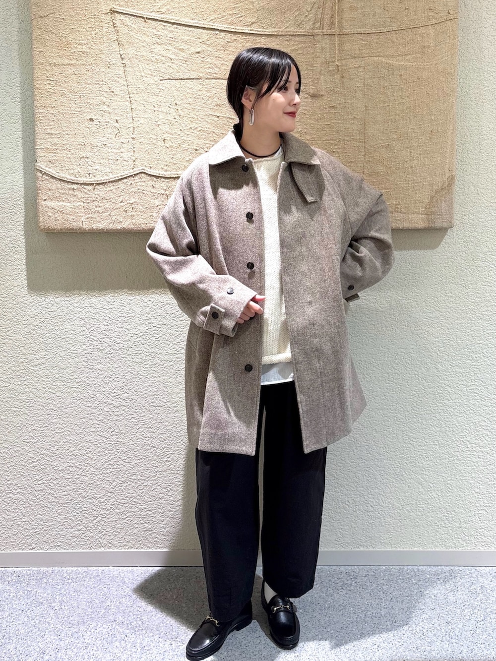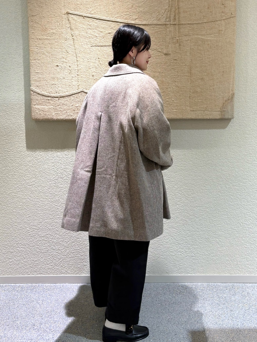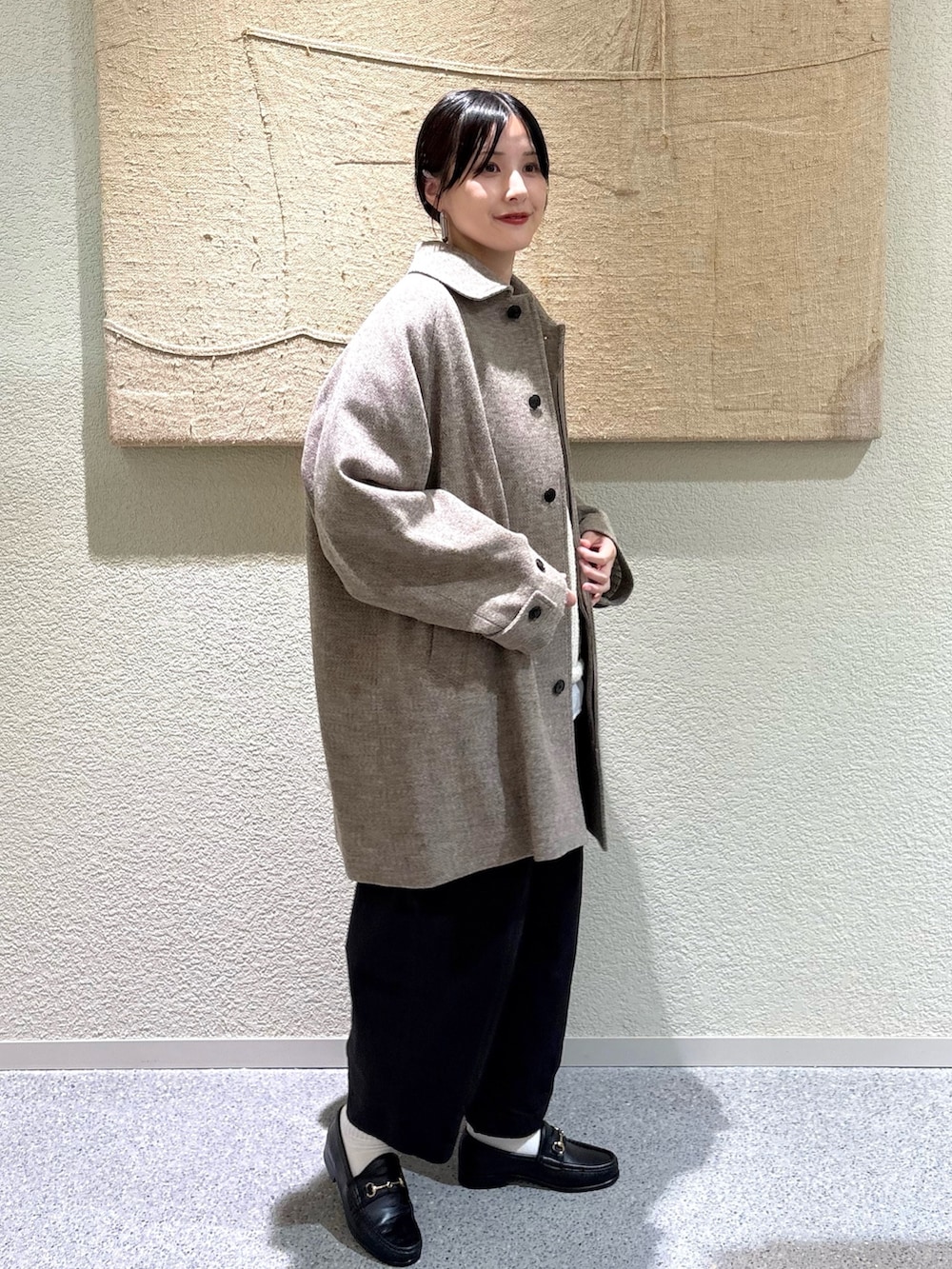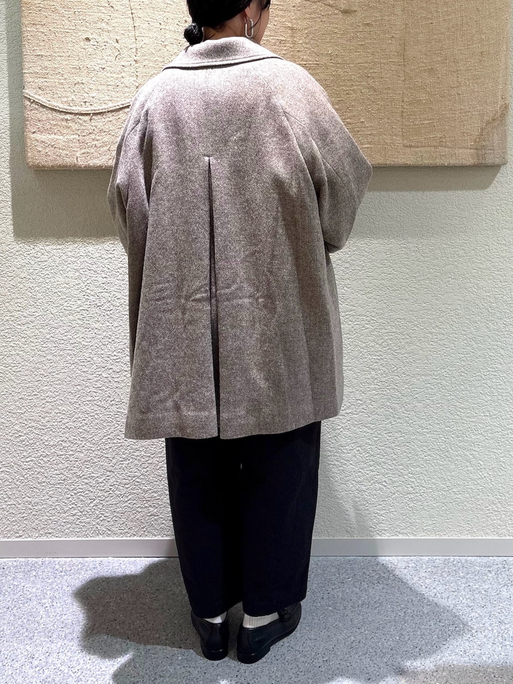 柔らかなウール素材を使用したショートコート。ゆとりのあるシルエットと短めの丈感で、バランスよく着こなせる一枚です。軽やかなベージュカラーが秋冬の装いに明るさを添え、どんなスタイルにも馴染む万能アイテム。