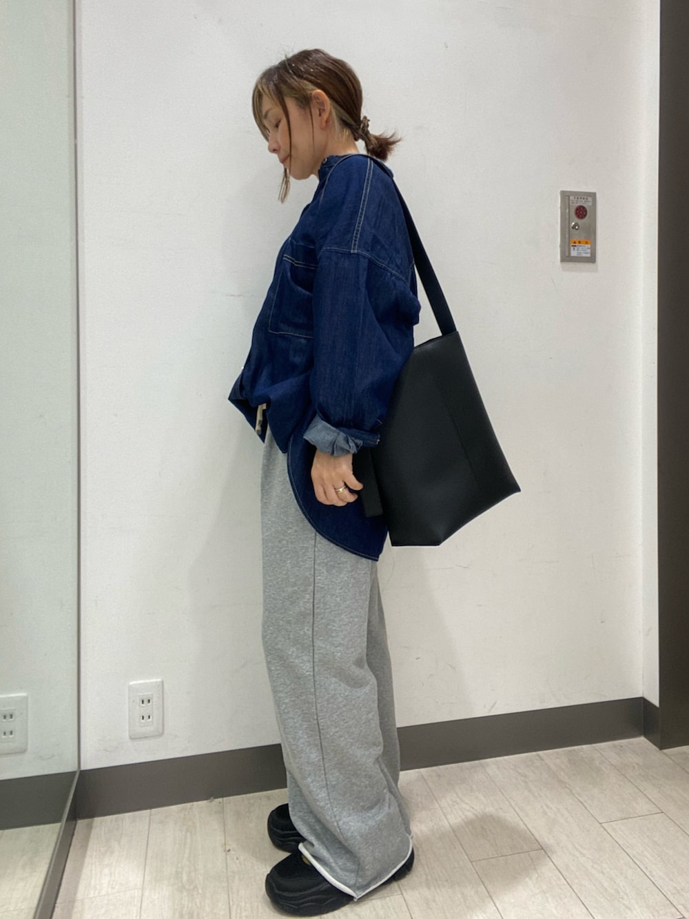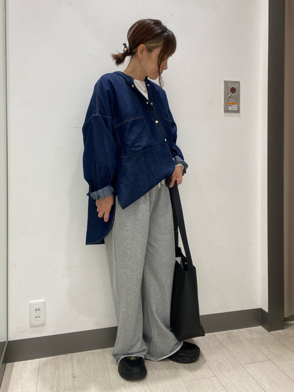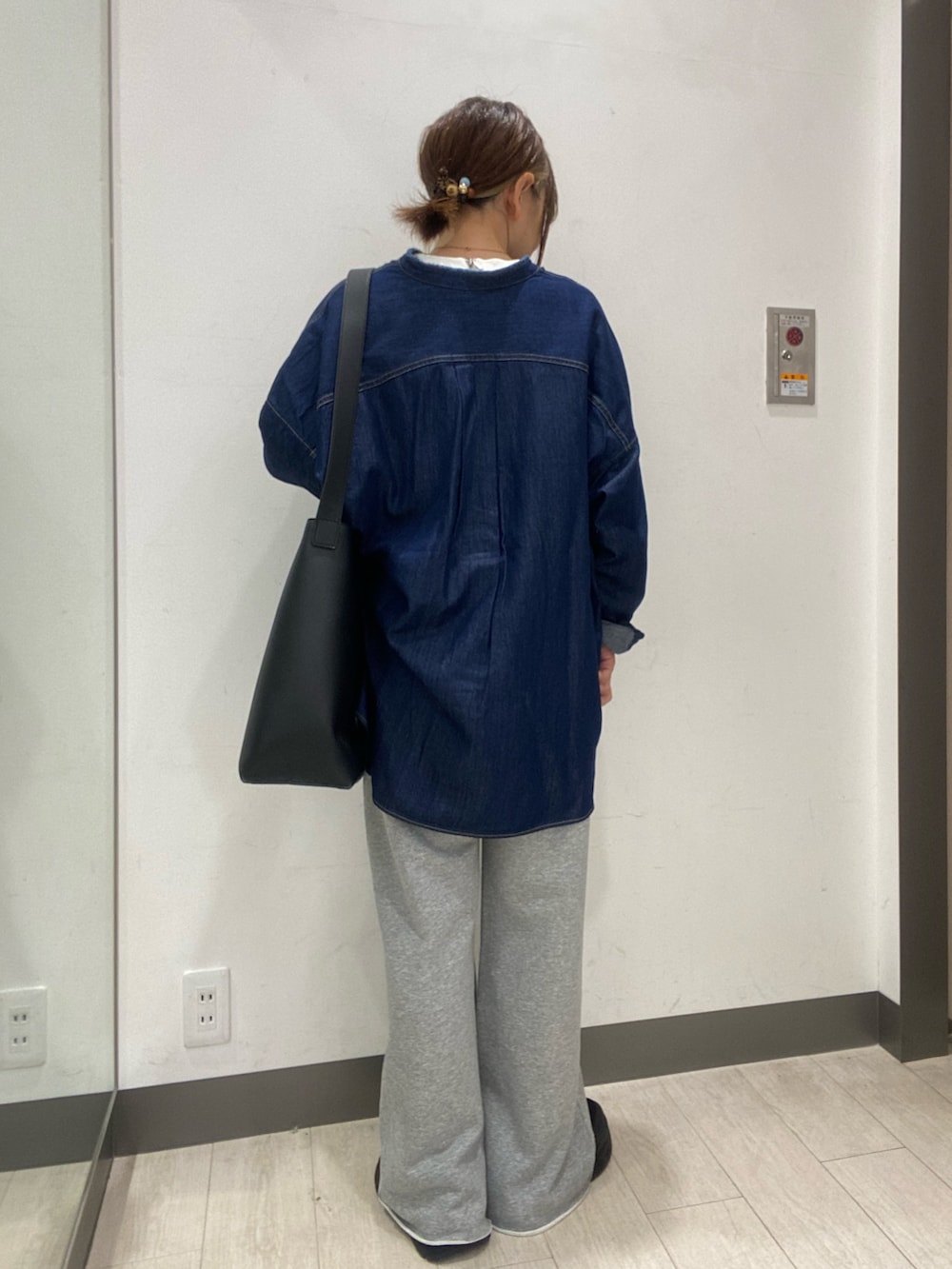 デニムのシャツは、バンドカラーでゆったりシルエットが落ち感があり、とても可愛いです。