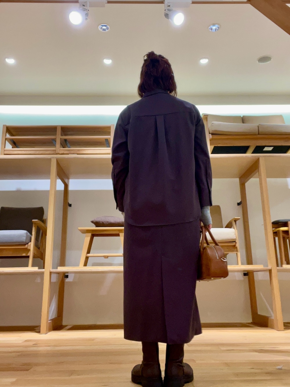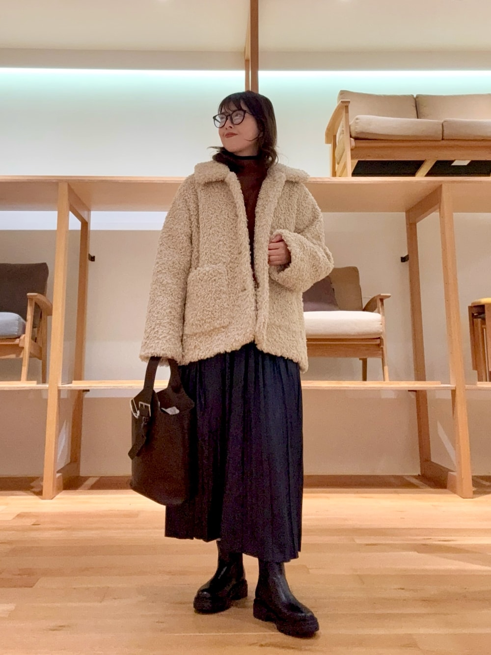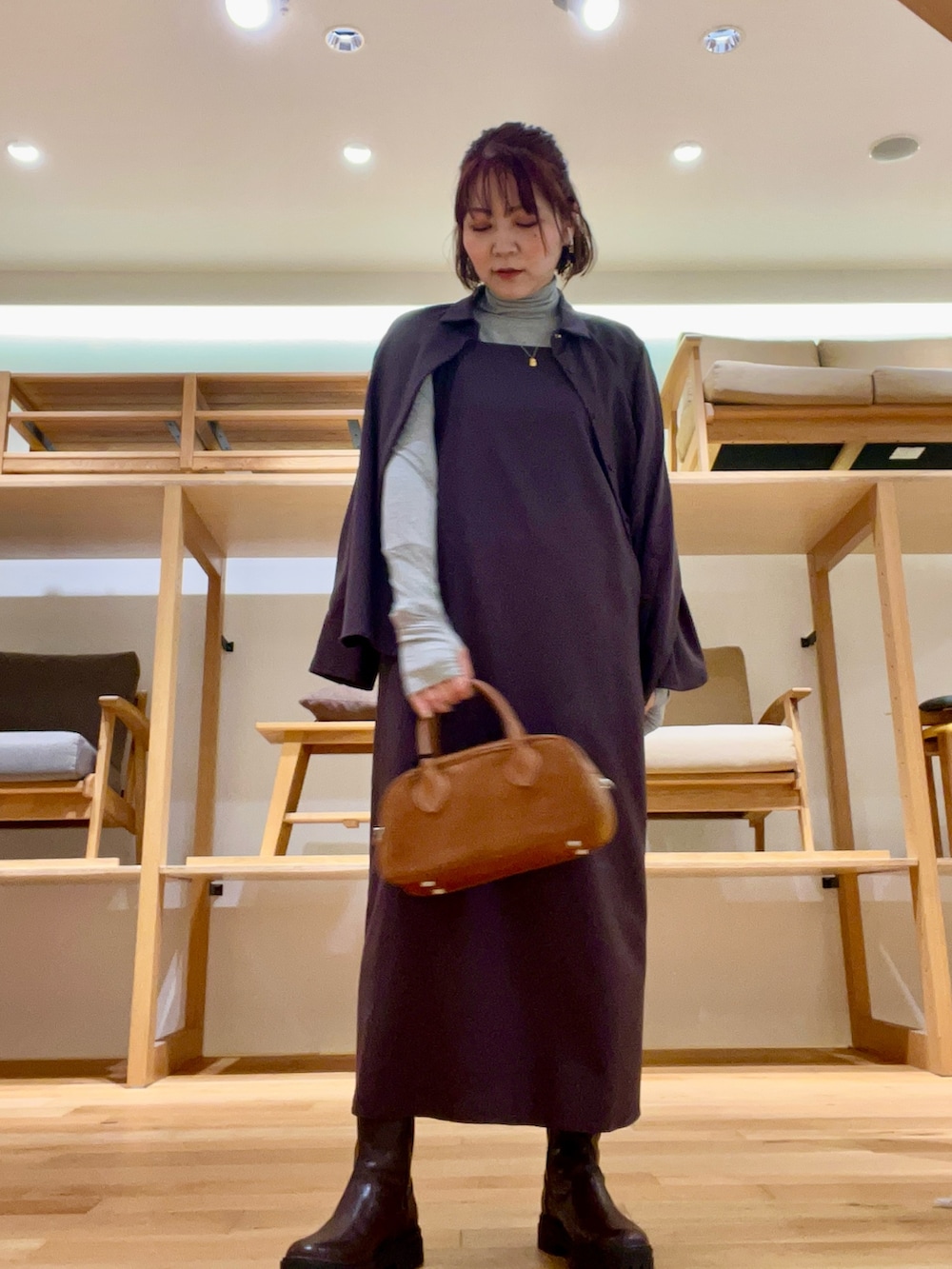 どちらもゆったりとしたシルエットで着やすく、グレーのハイネックを合わせ柔らかい印象に‼︎