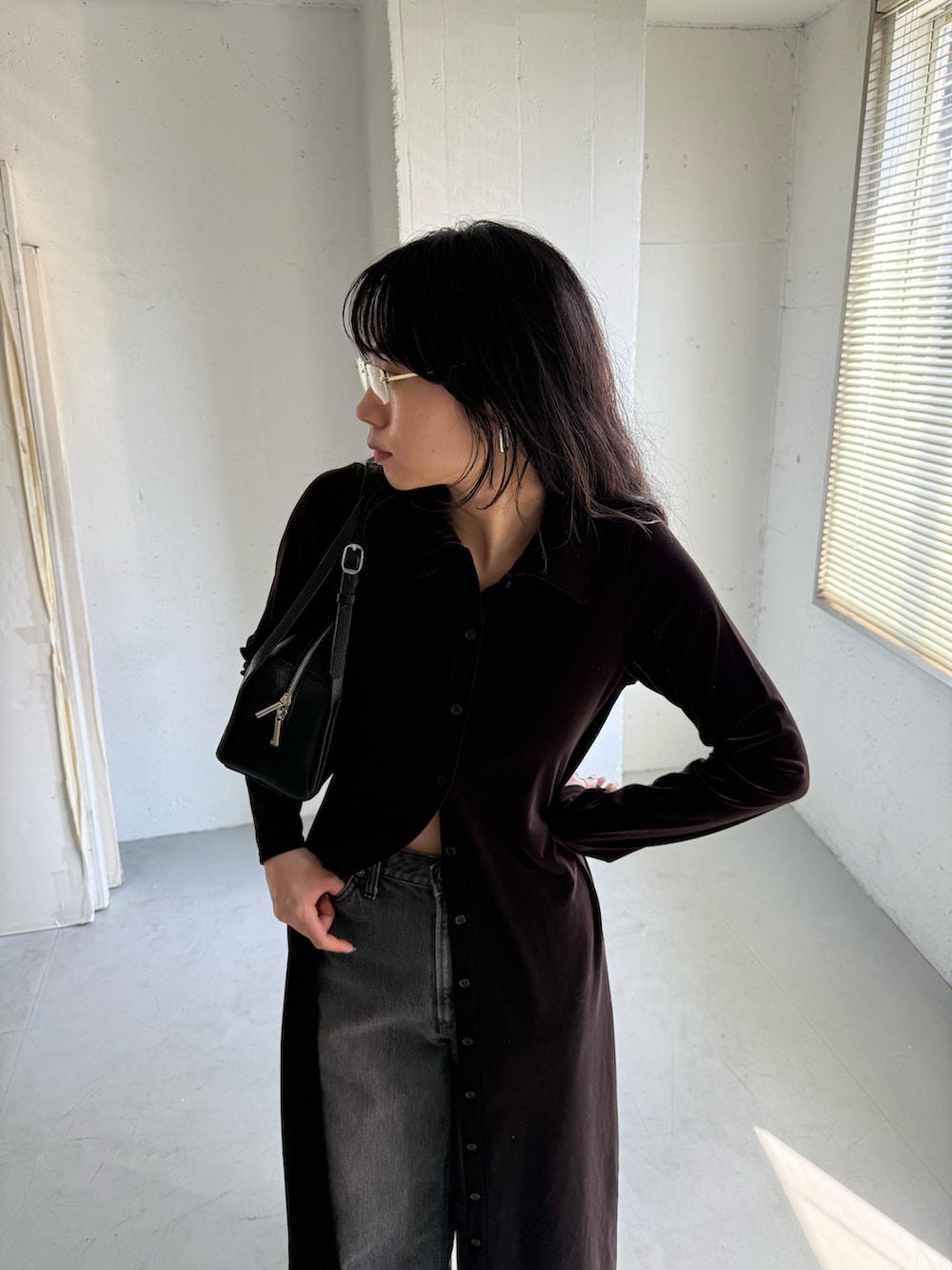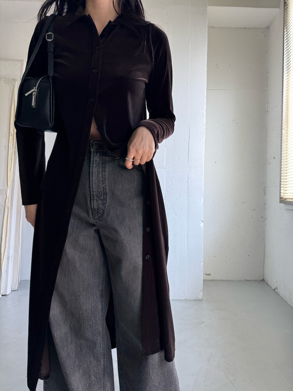 秋らしいカラーリングに、足元は赤色のシューズでアクセントにしました。