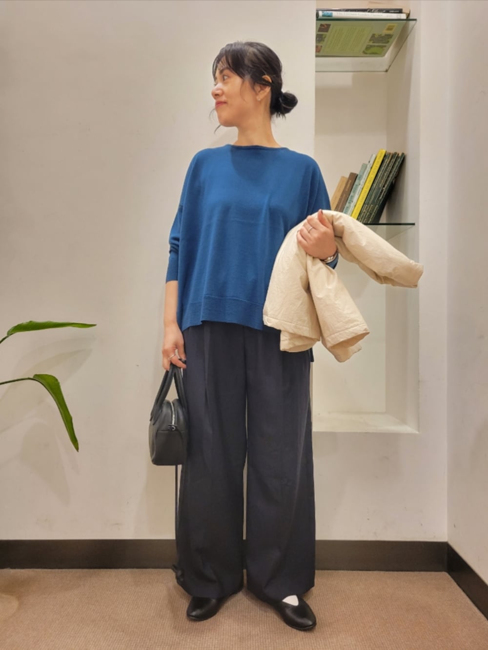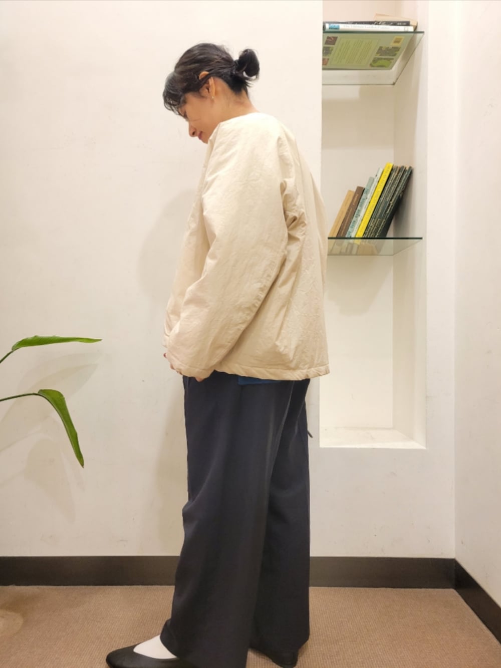 厚手のアイテムも中に着やすいです。