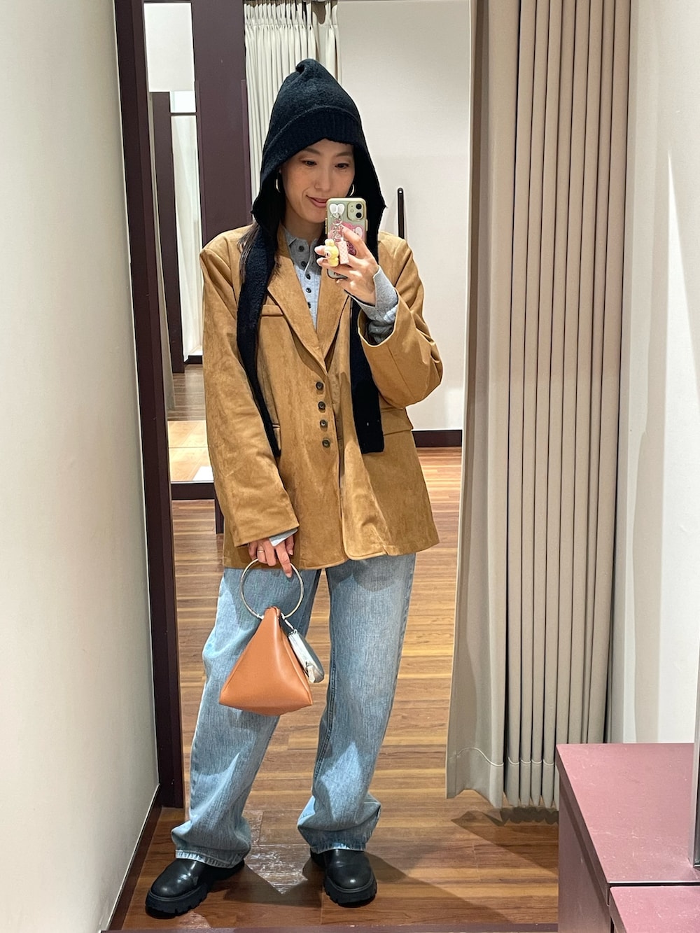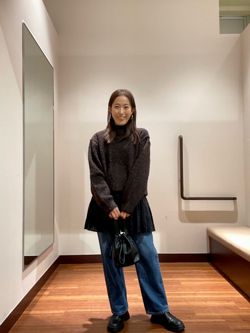 デニムはいつもこちらのタイプはXSを履いていましたが、今回はゆったりとズルッと履きたかったのでMを合わせてみました‼︎