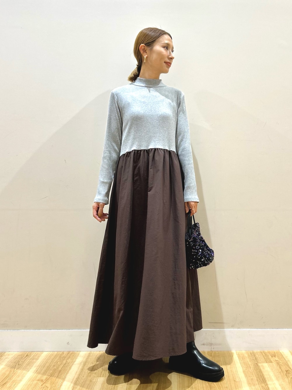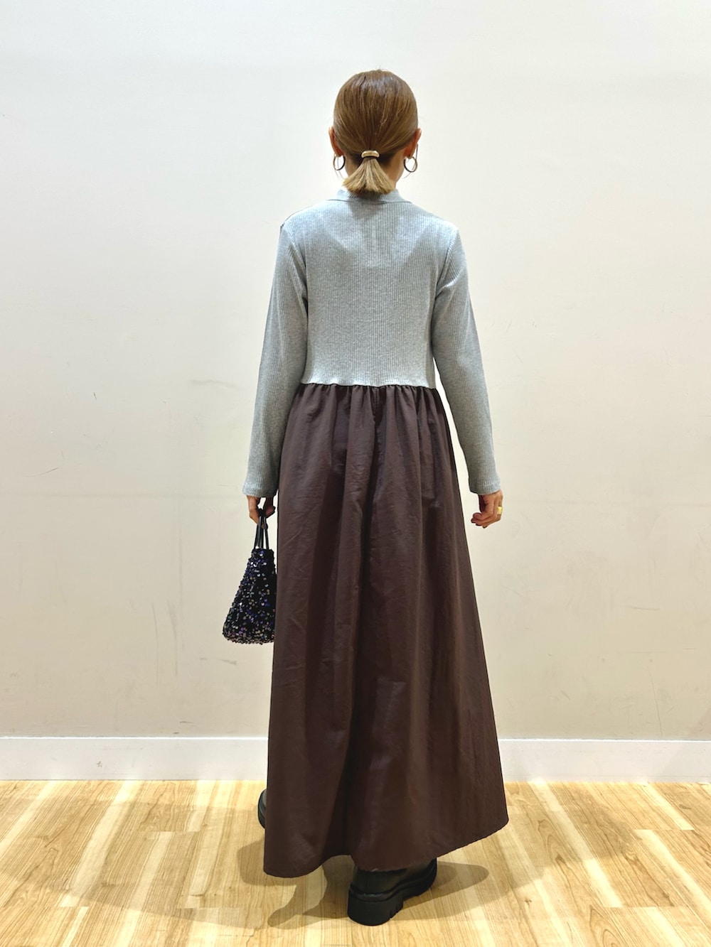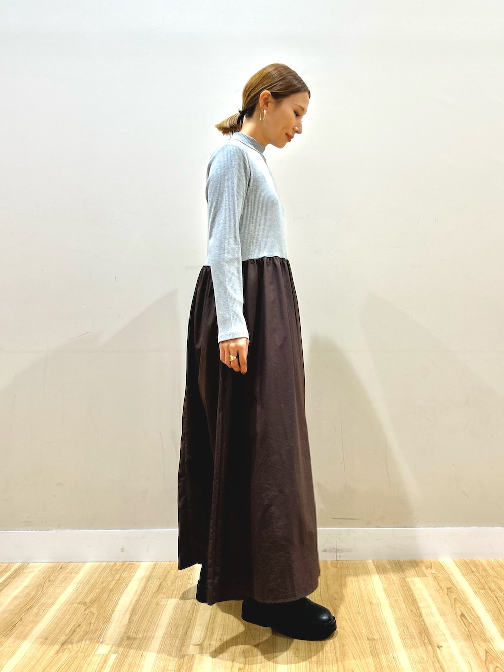 ワンピースは伸縮性の良い細リブ素材が