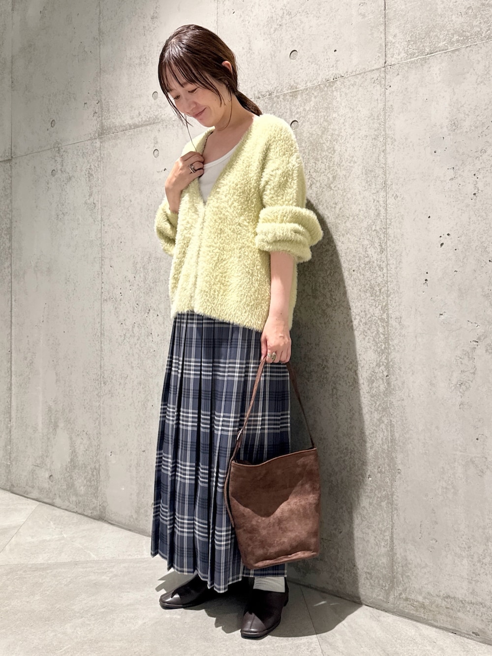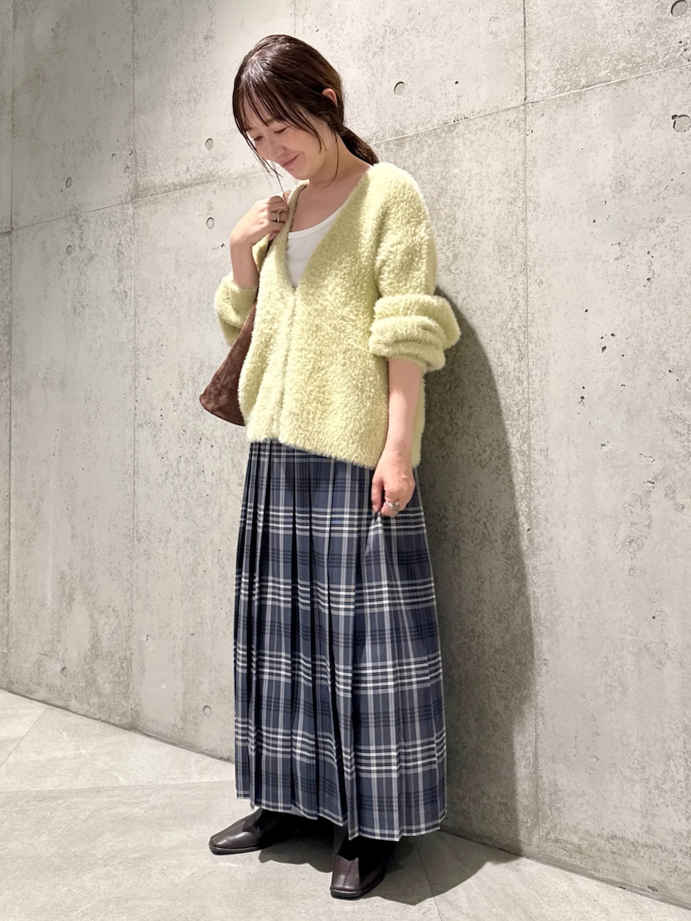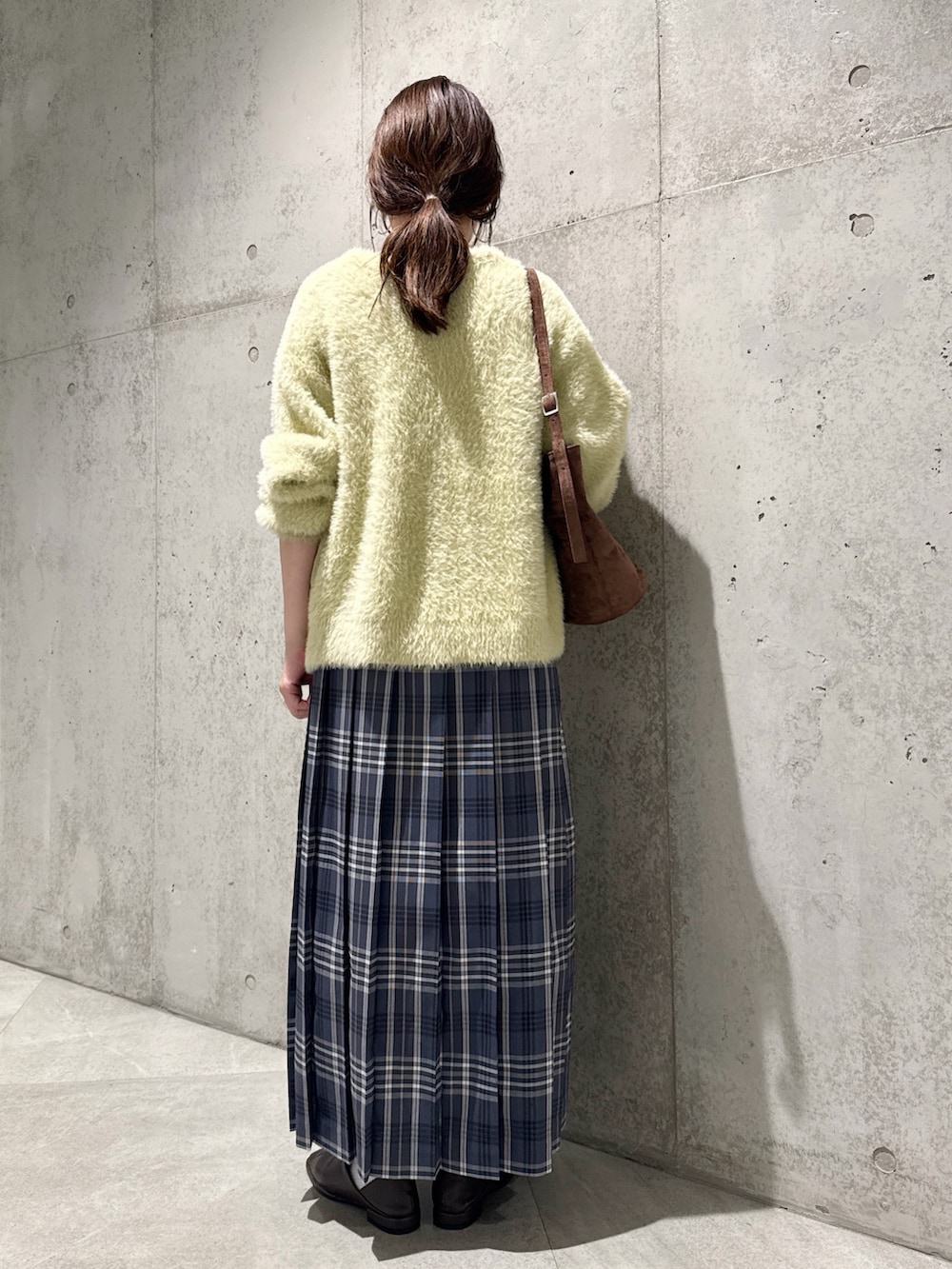 今回は、チェック柄のプリーツスカートと合わせて、きれいめカジュアルコーディネート。