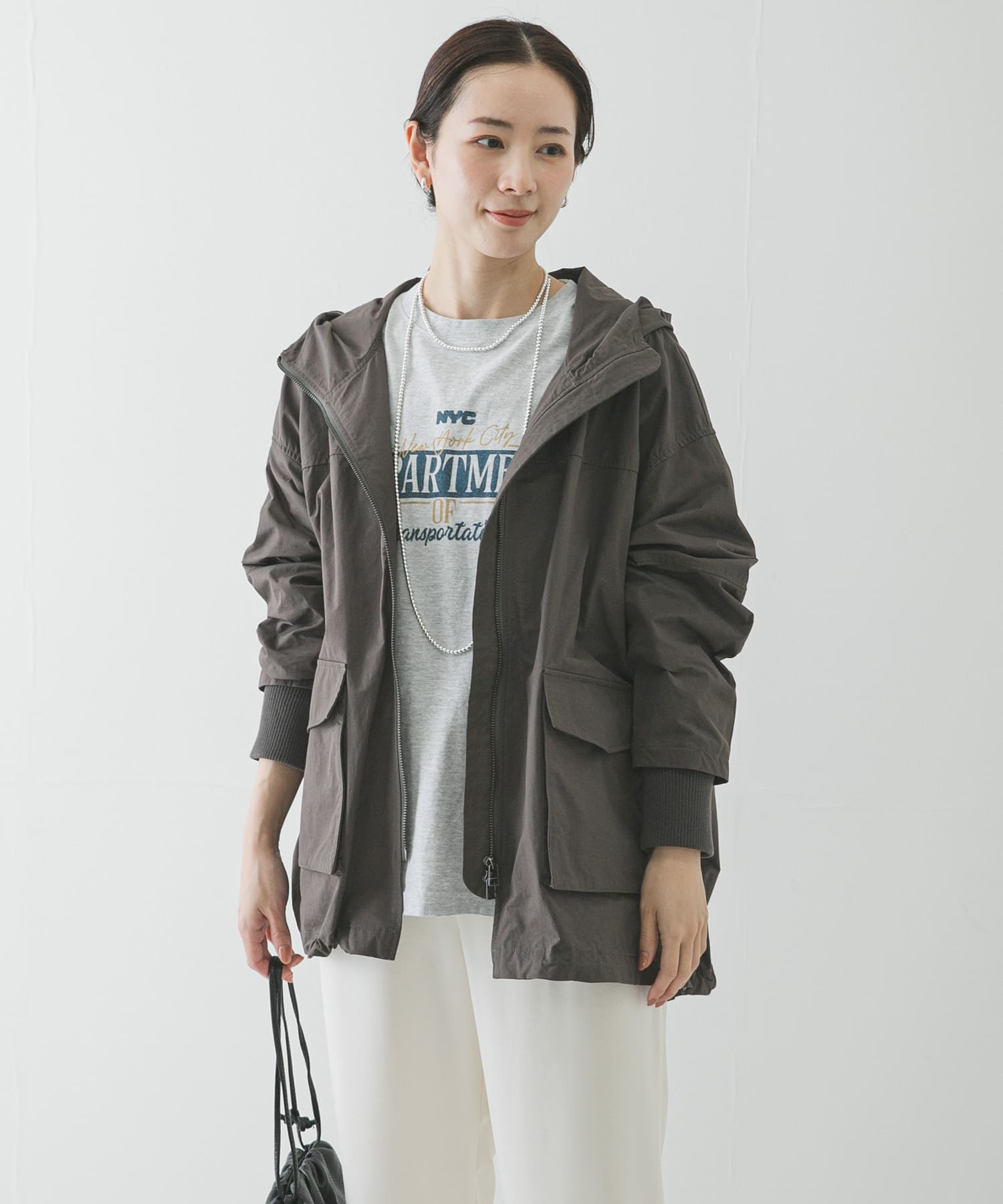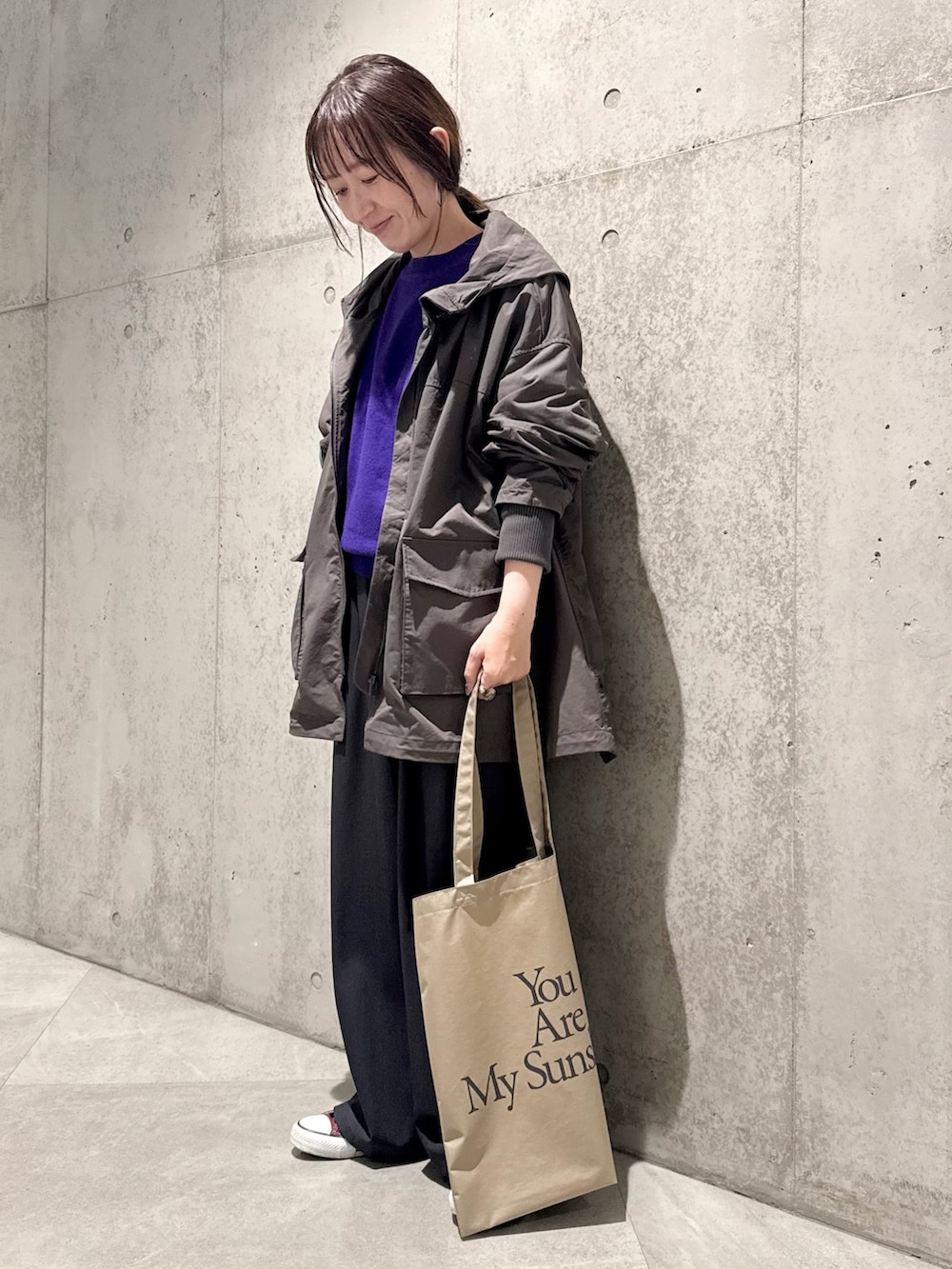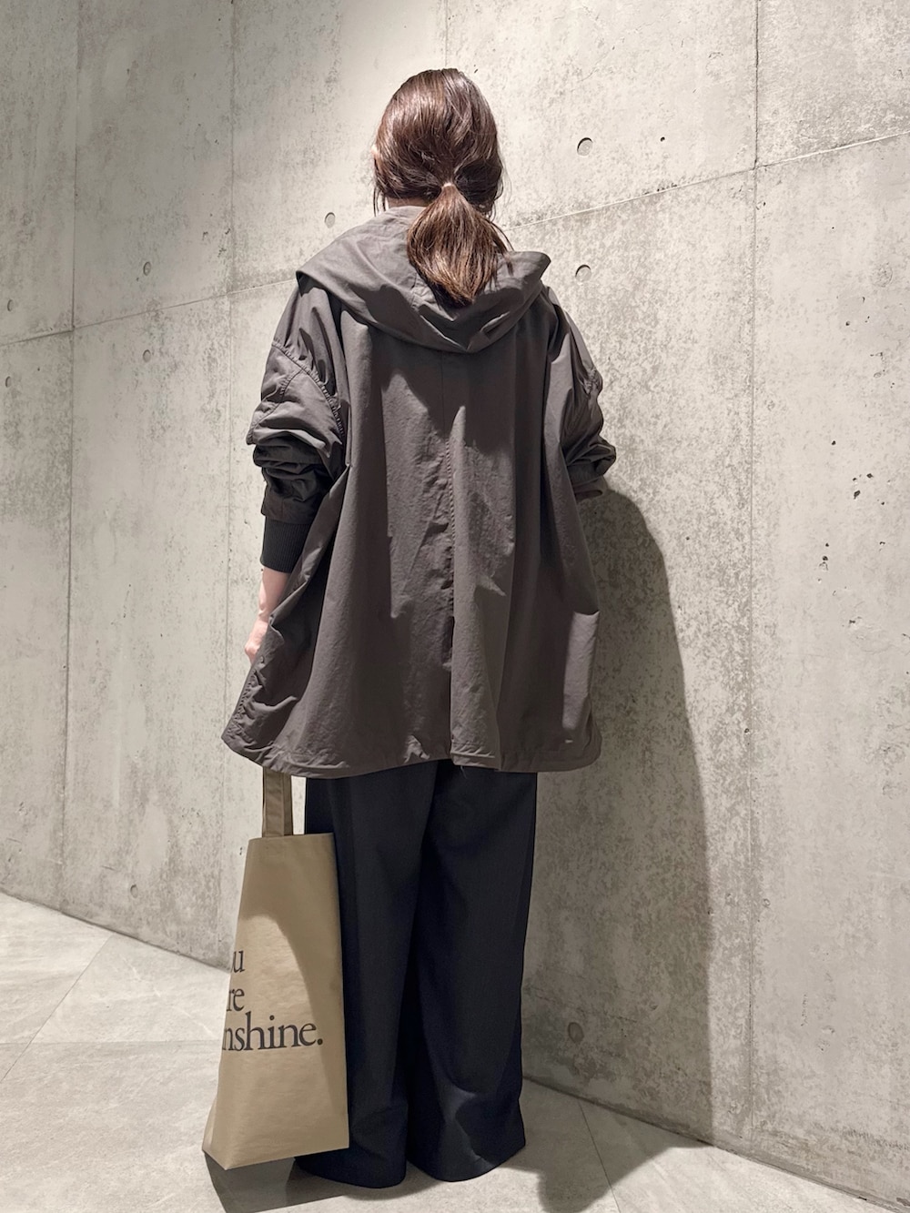 ハリ感のある素材にオーバーサイズシルエット、ゴールドのジップがカジュアルな印象にならず、こなれた雰囲気を演出してくれます。