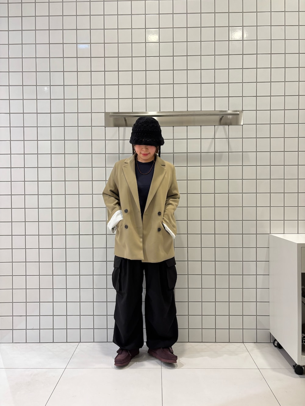 全体的にはゆったりとしたシルエットで、冬にはしっかりと厚手のトップスとも合わせやすい!
