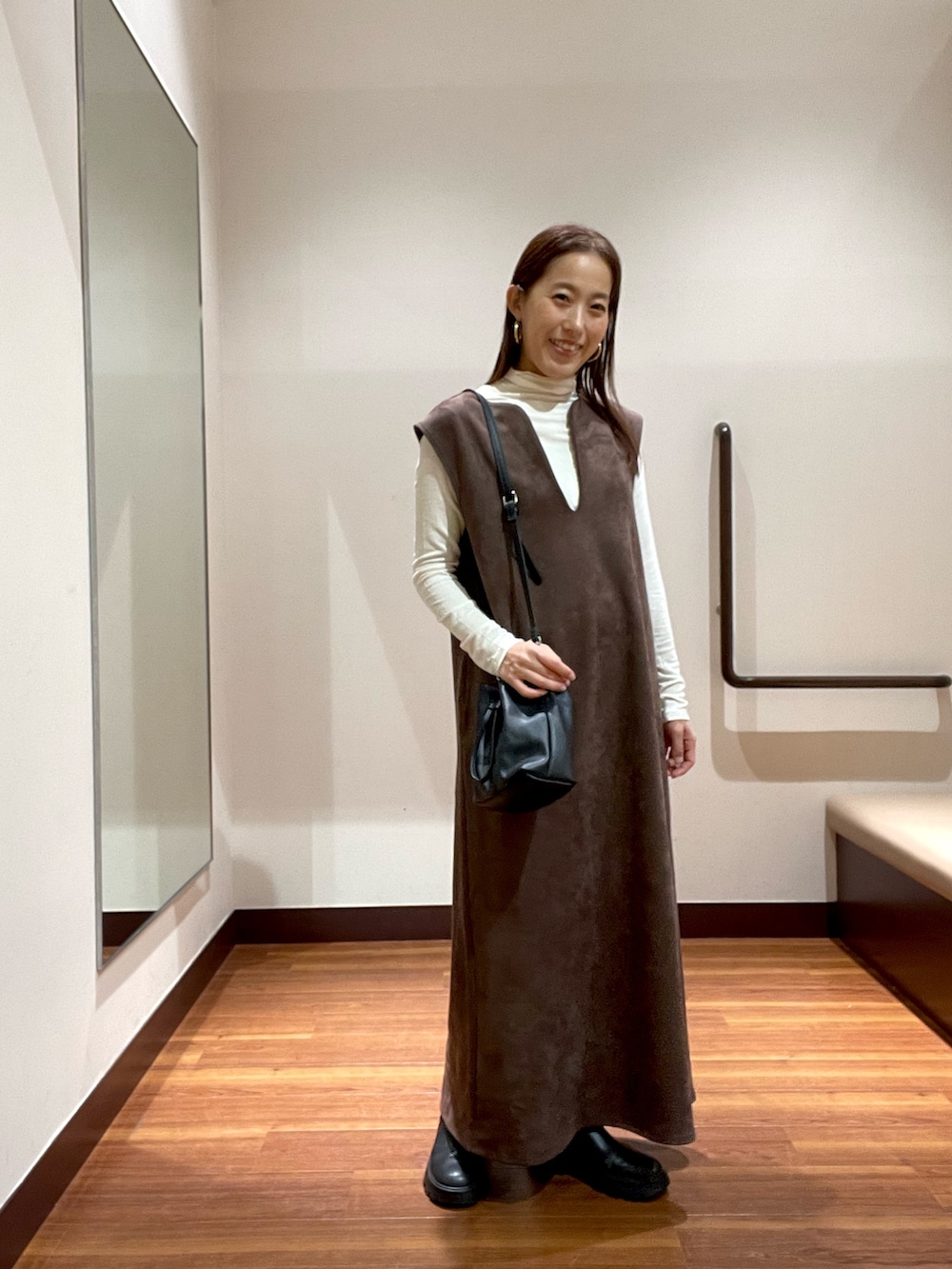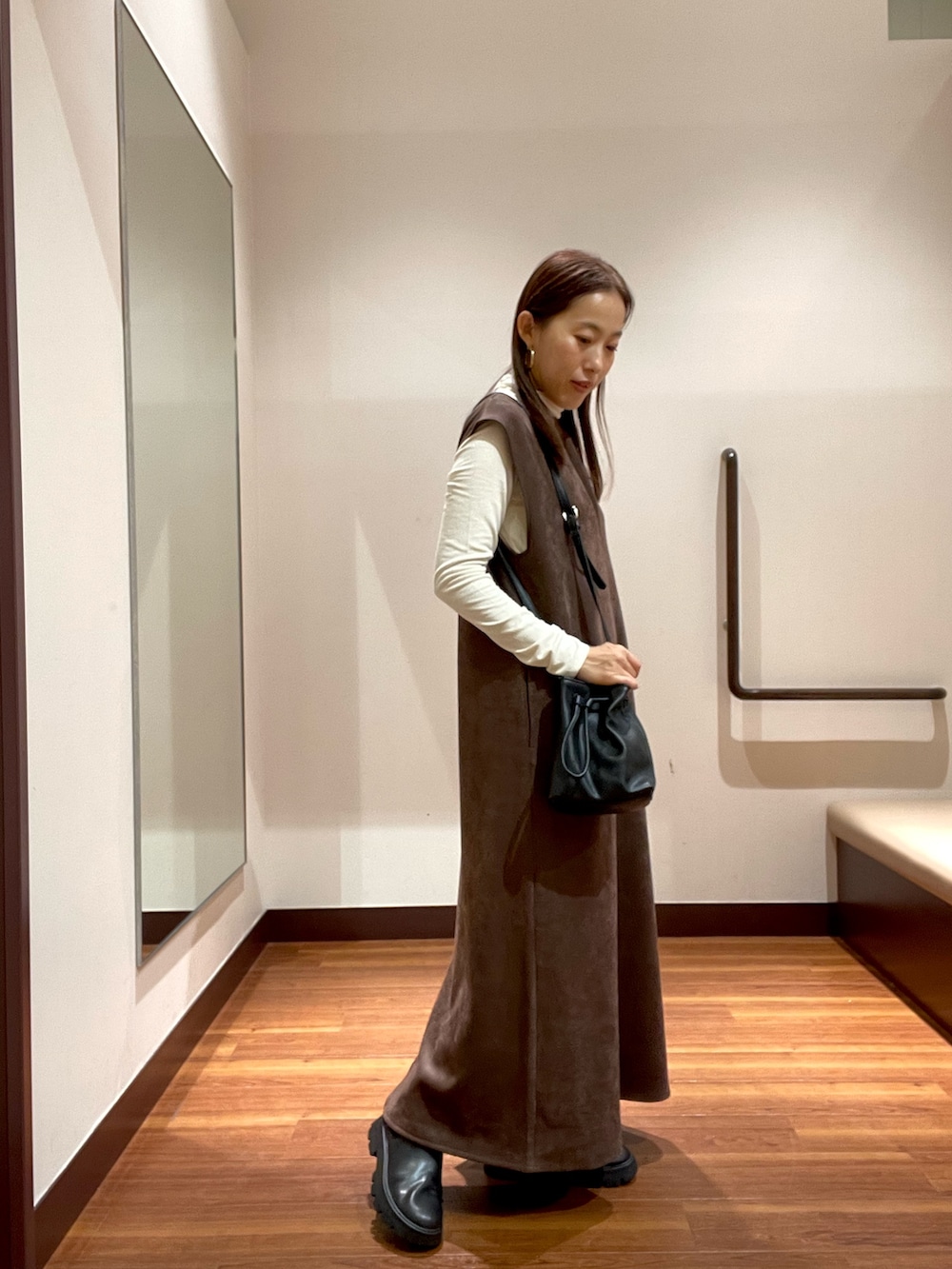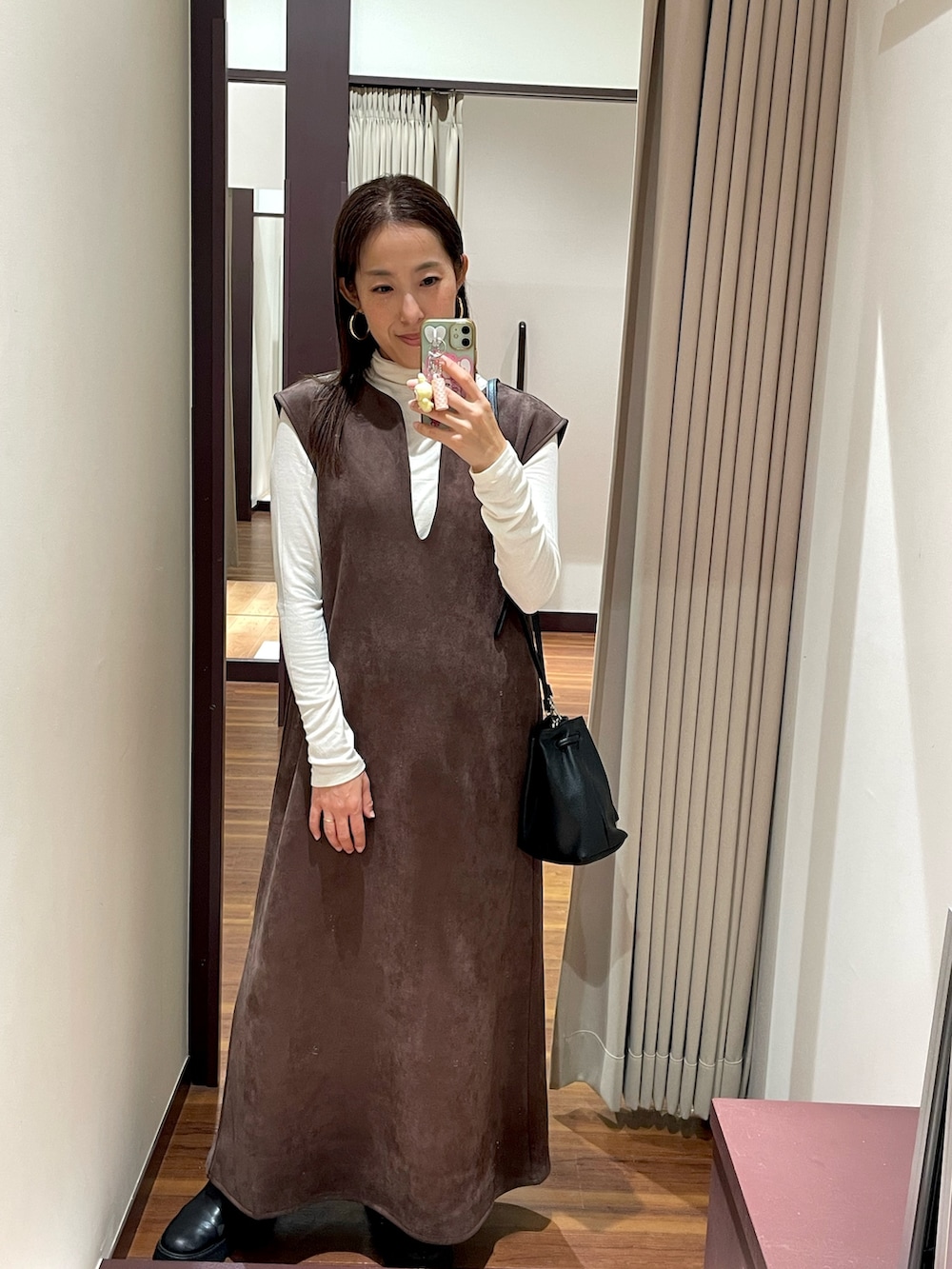 ワンピースはフェイクスエード素材なので今期らしいスタイルになります‼︎