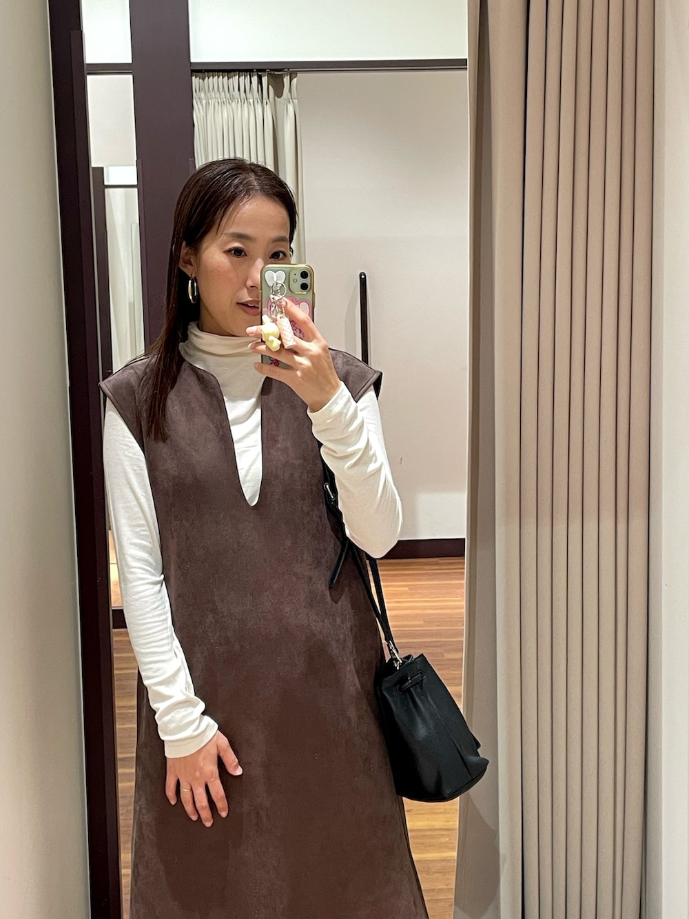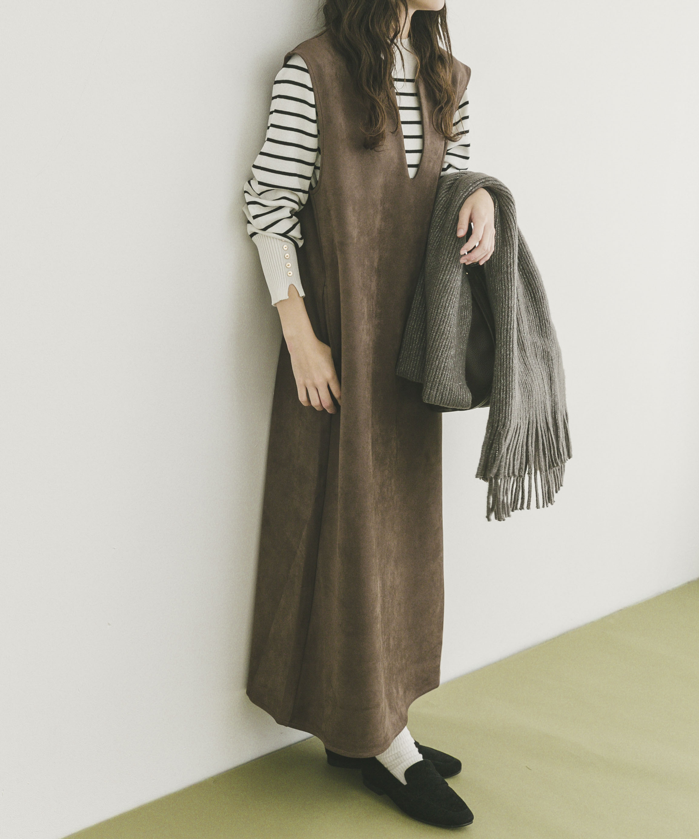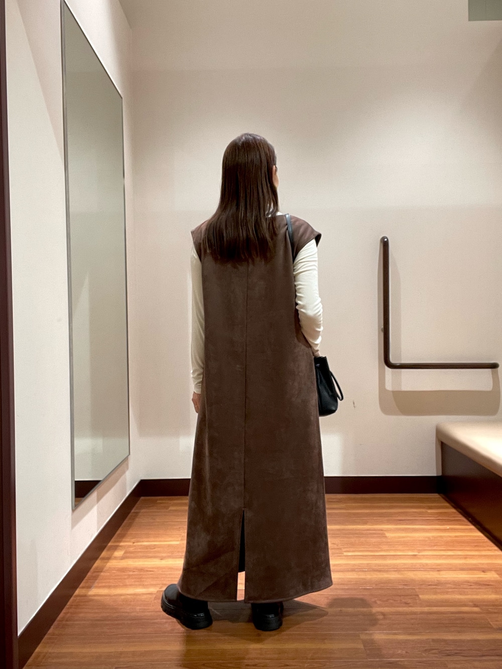 ワンピースはフェイクスエード素材なので今期らしいスタイルになります‼︎
