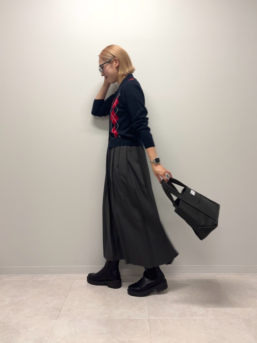 スカートは太めのプリーツでトップスのレトロな雰囲気に合わせて選んでみました!