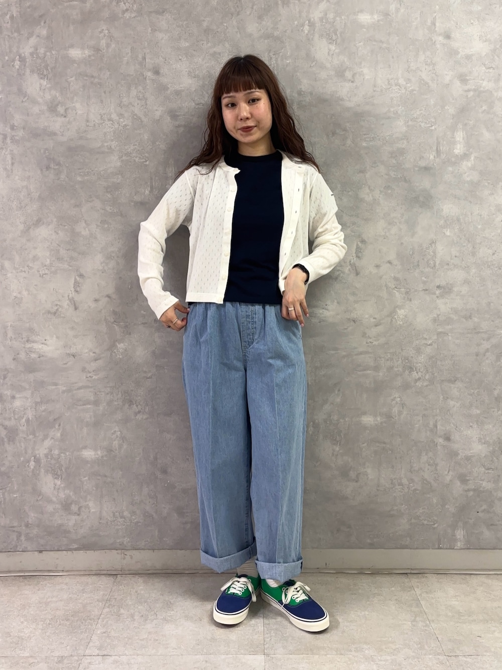 トレーナー合わせでバランスの取れたカジュアルスタイルや、ざっくり白ニット合わせでレディライクなナチュラルスタイルもおすすめです~~🧶