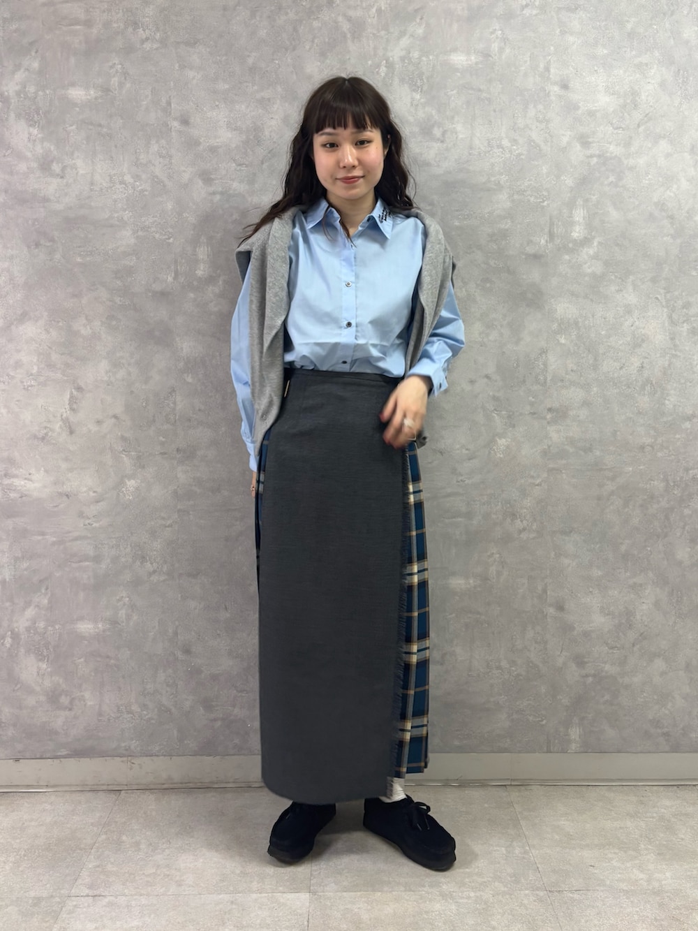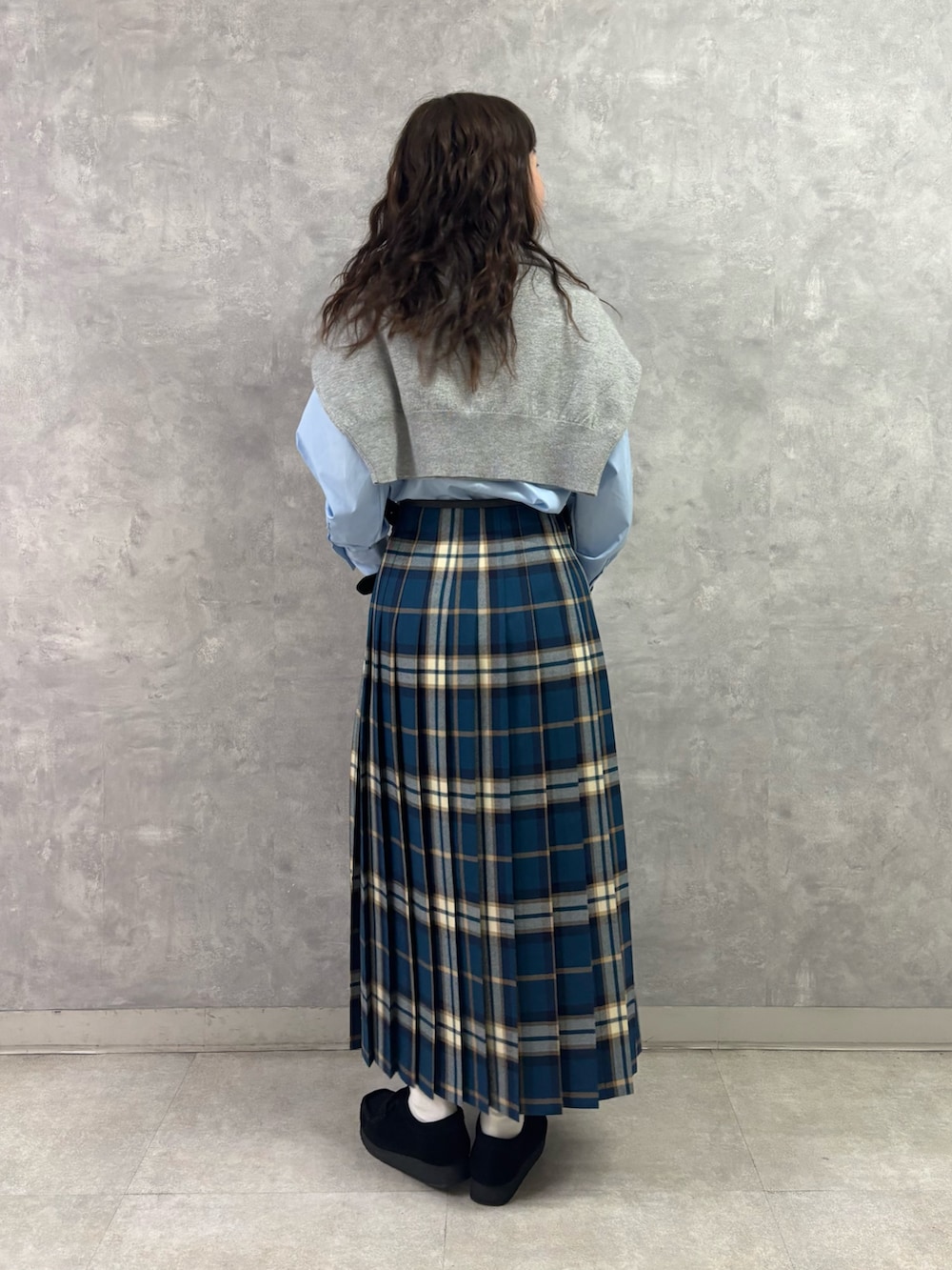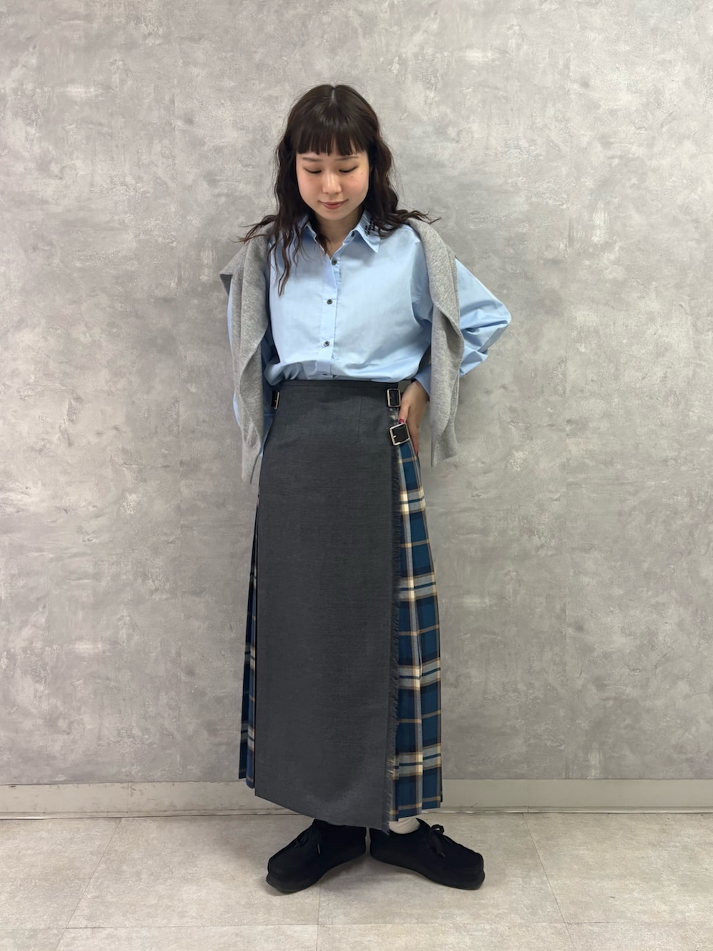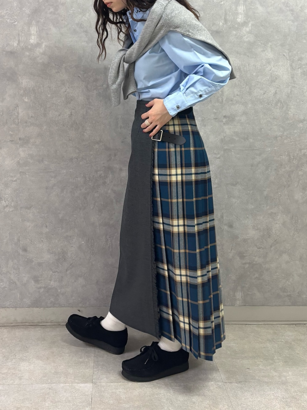 グレー×ブルーチェックのカラーリングは落ち着いていて知的なイメージがありながら、ブルーチェックがどこか個性的な印象も与え、洗練されたシティーファッションを叶えてくれる1着✨