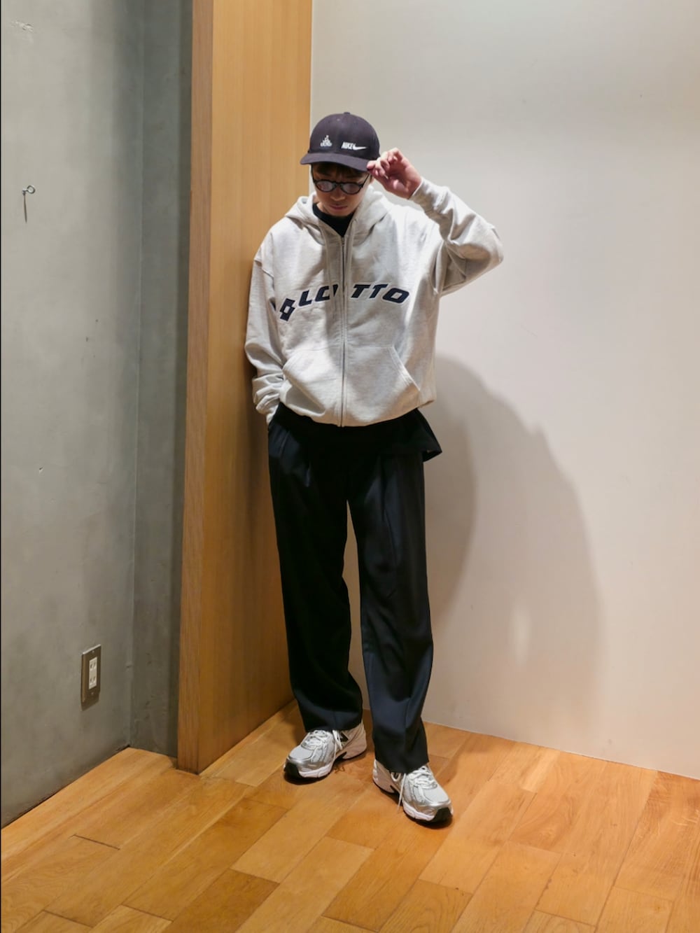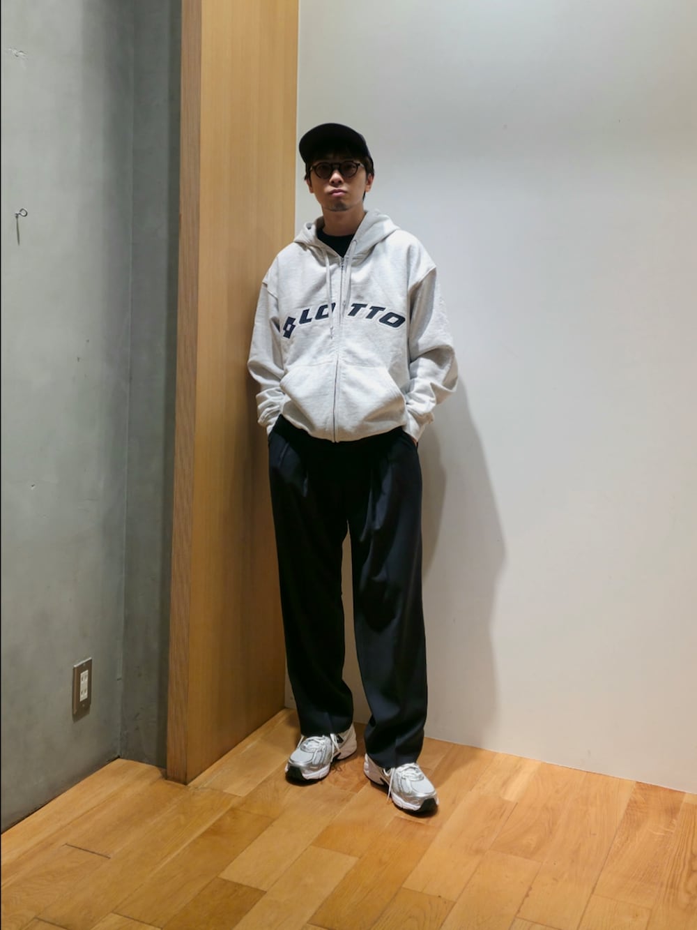 大人のジップパーカーコーデはスラックス合わせがGOOD👍