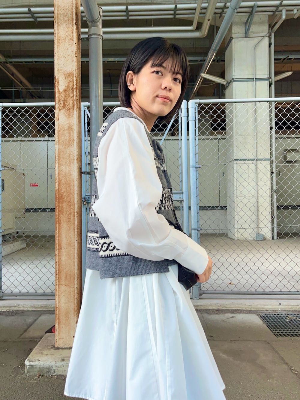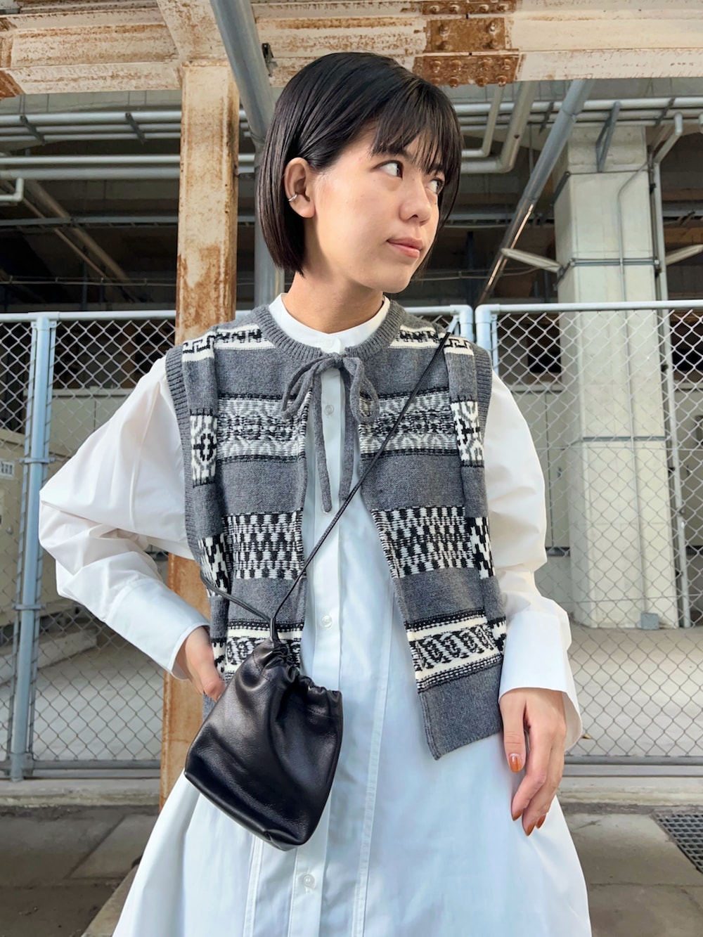 ミニワンピースとデザインのベストで大人カジュアルコーデ✨️