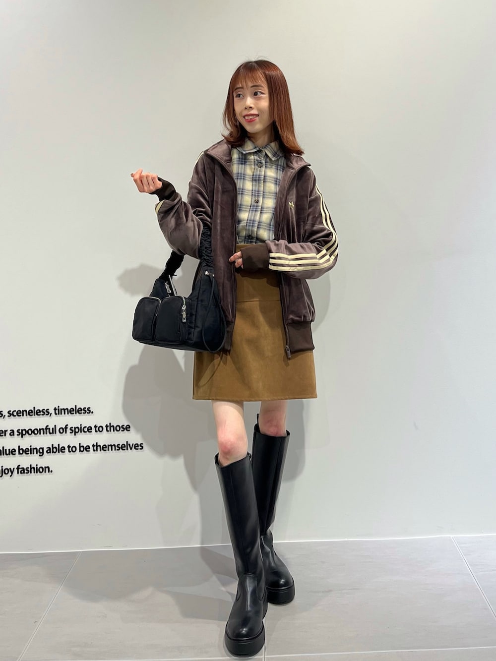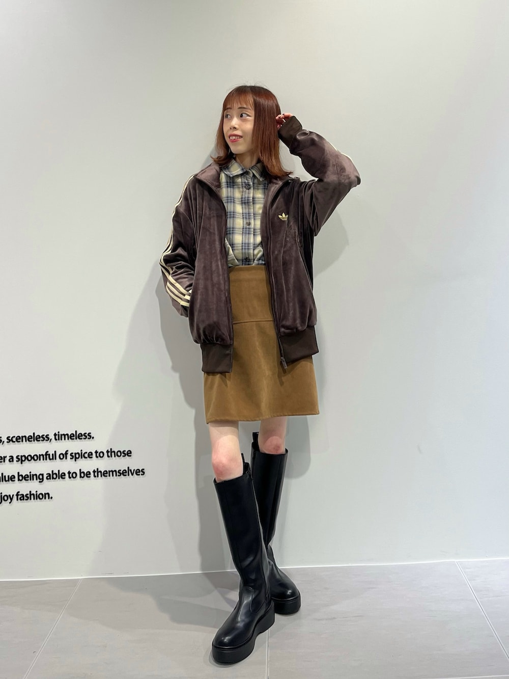 可愛らしい印象のミニスカートにアディダスのトラックジャケットを合わせたスポーツMIXコーデです✌🏻