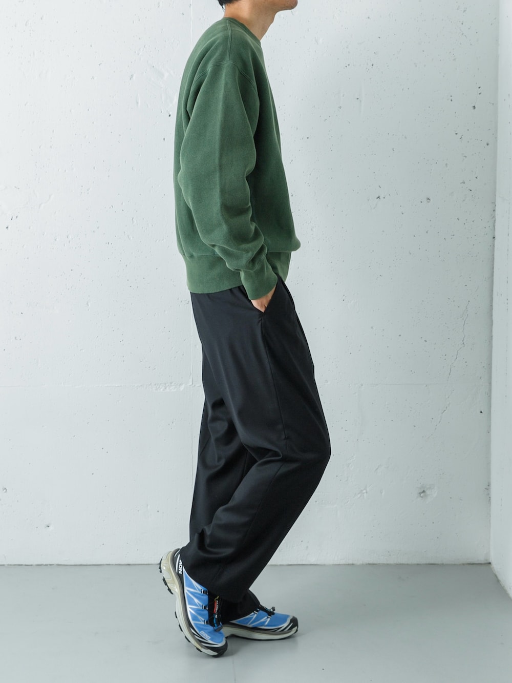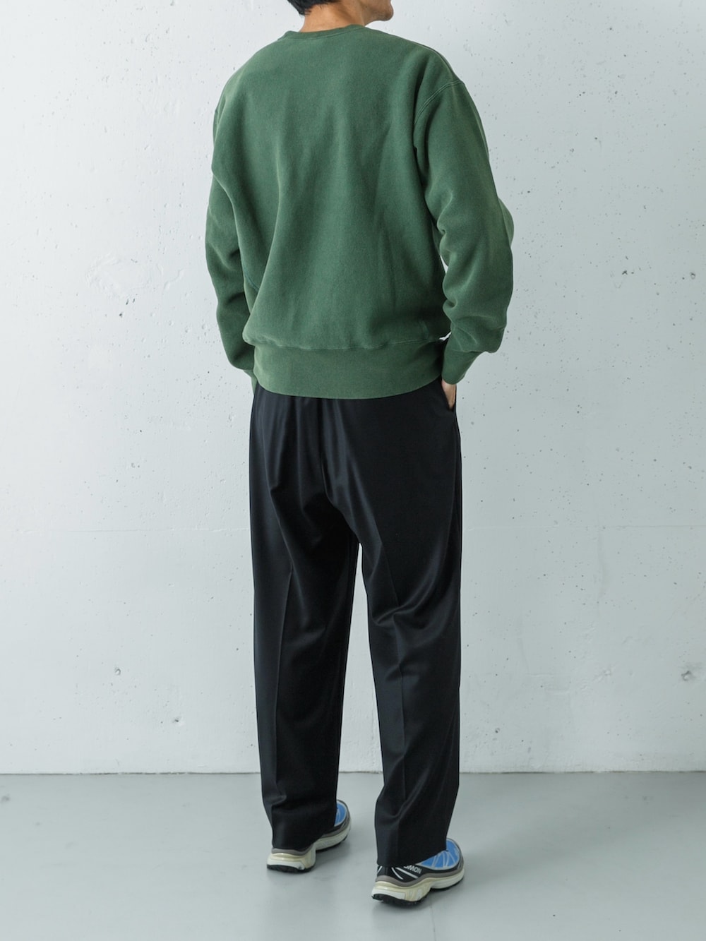 足元には存在感のあるスニーカーを合わせ、抜け感と軽快さをプラス。