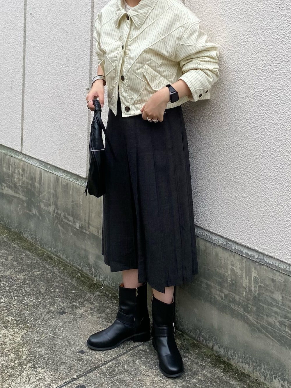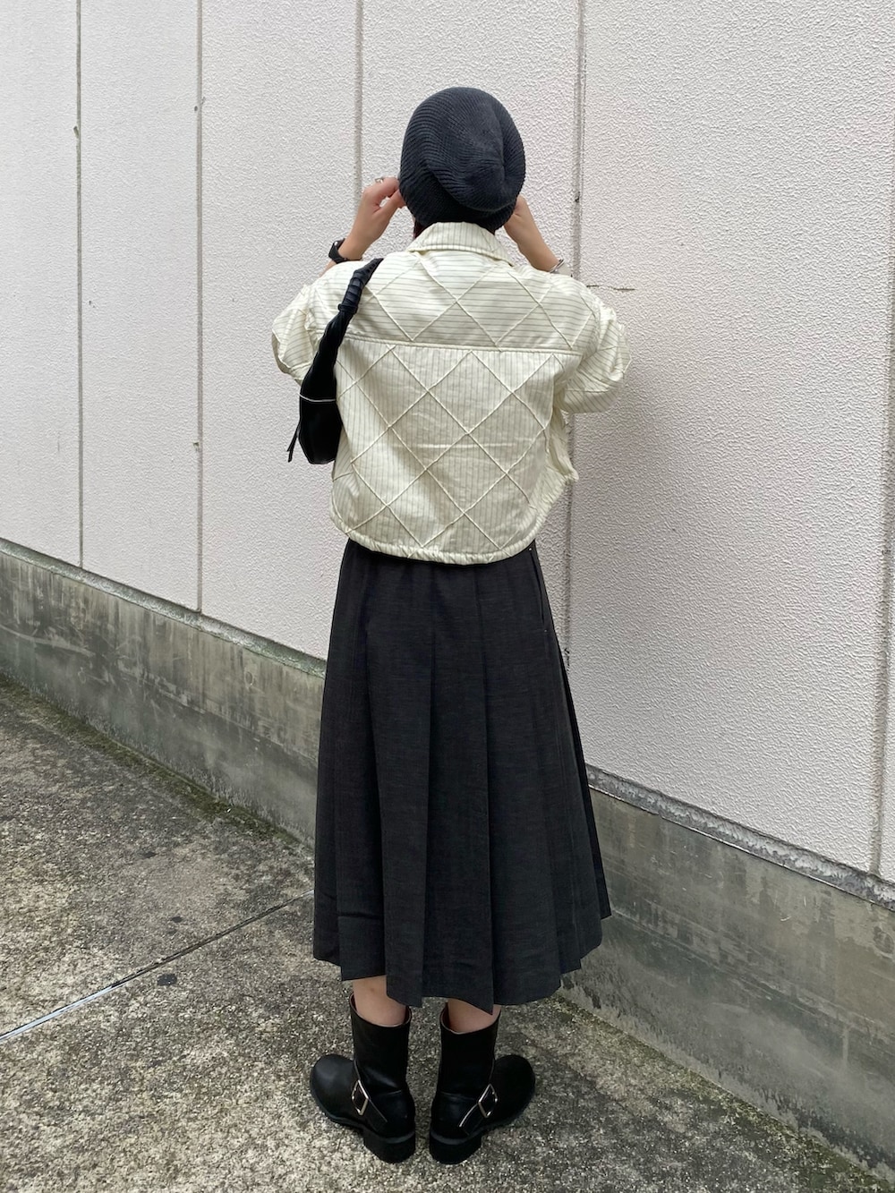 ミドル丈のスカートは160センチで膝もしっかり隠れる長さだったので、脚出し苦手な方でも挑戦していただきやすい丈感になってます✨