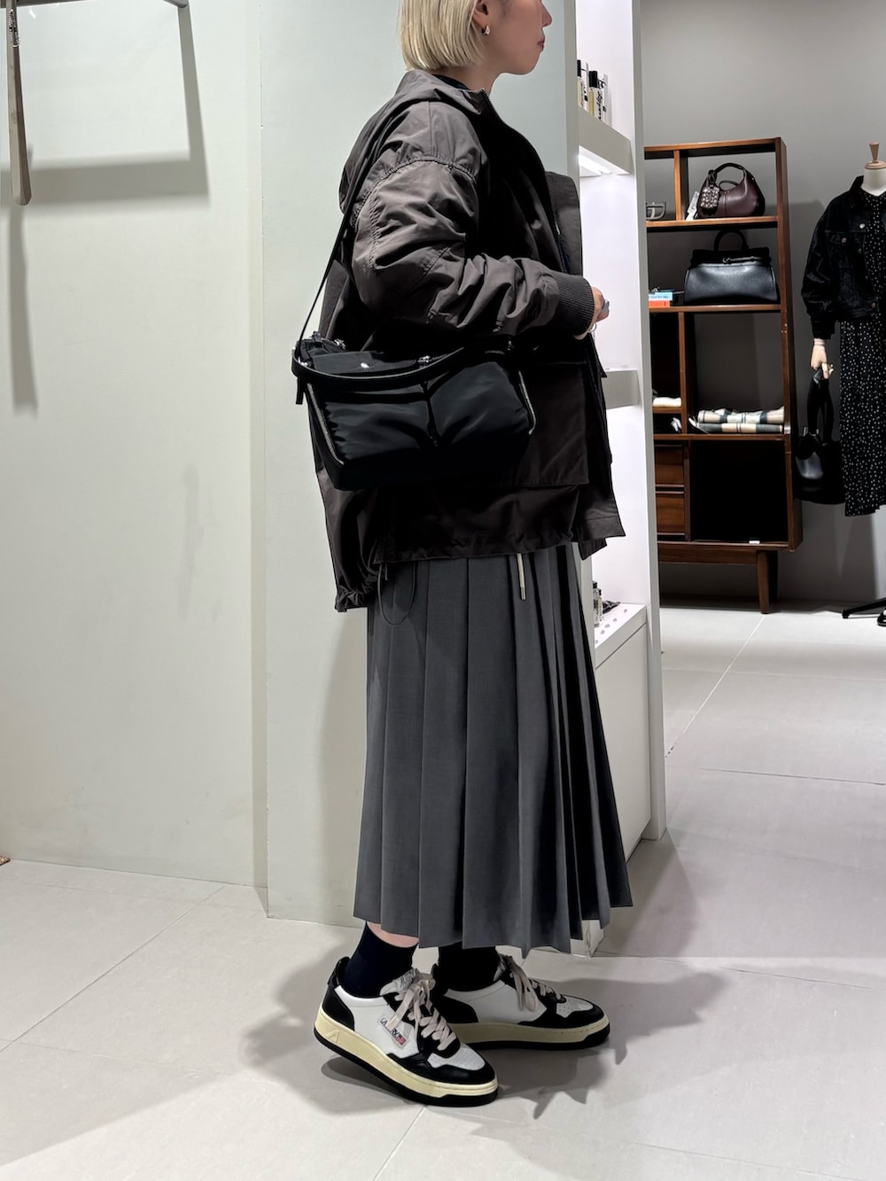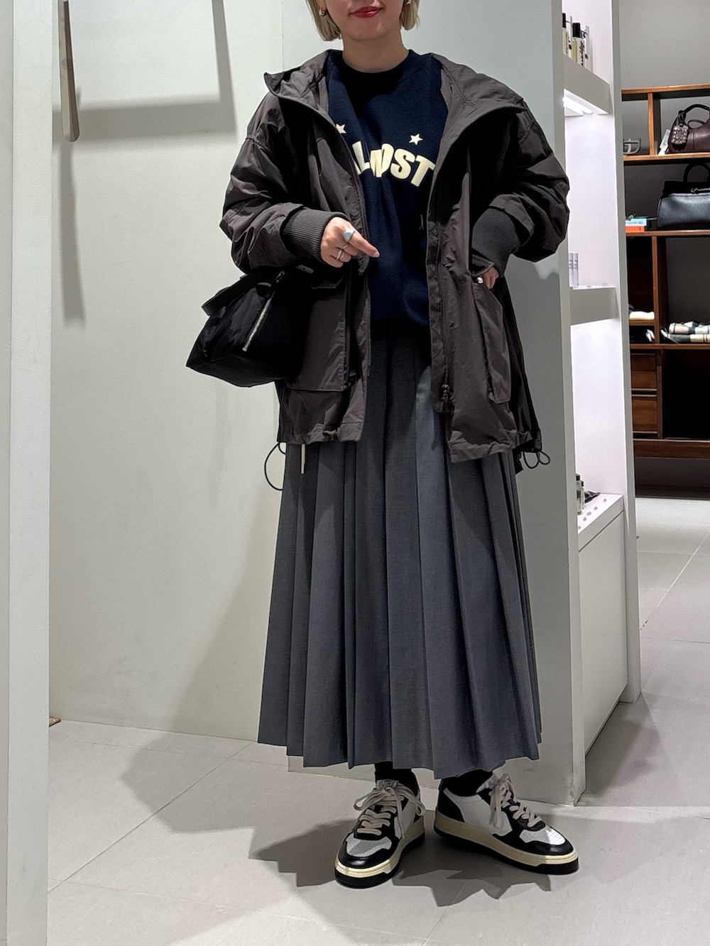 カジュアルな印象のあるマウンテンパーカーですが、スカートやワンピースなど甘めなアイテムとの相性も良いです!