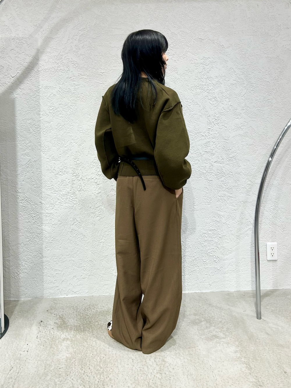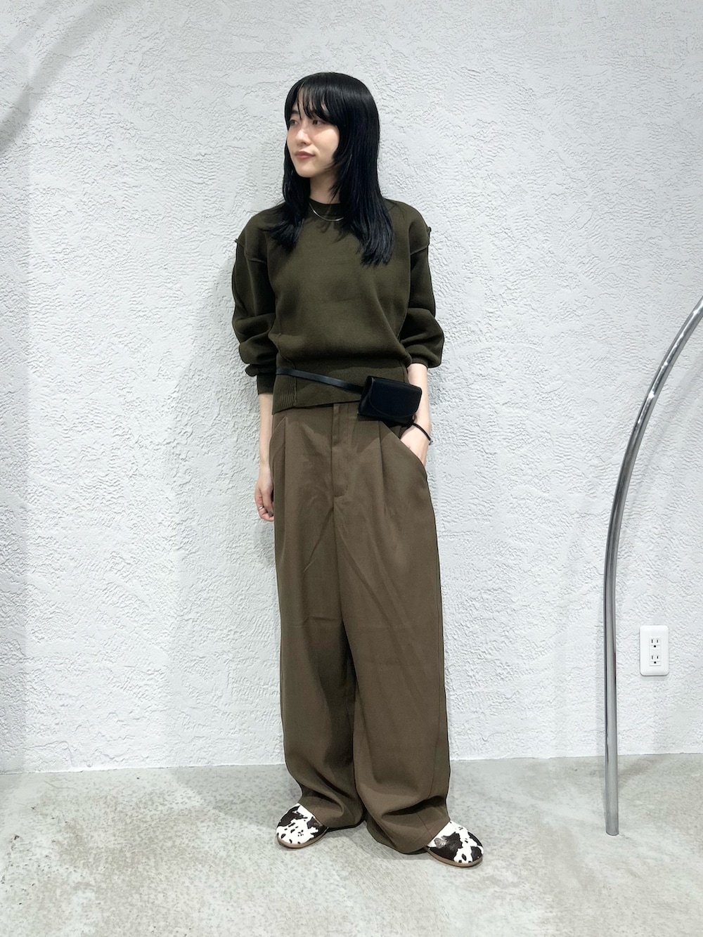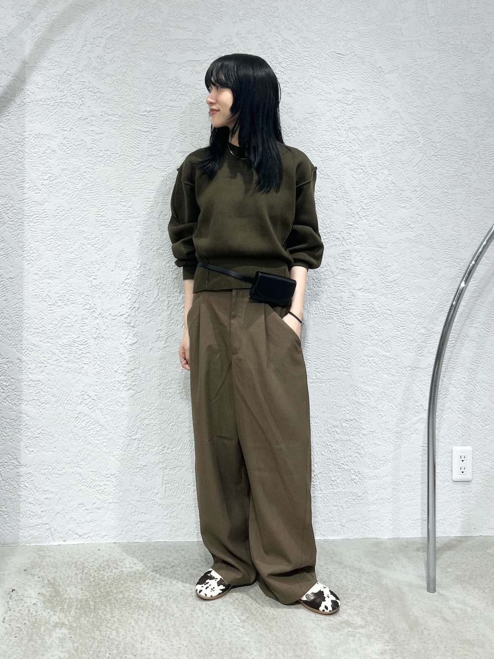スエットライクのニットに、タックパンツを合わせて着てみました。