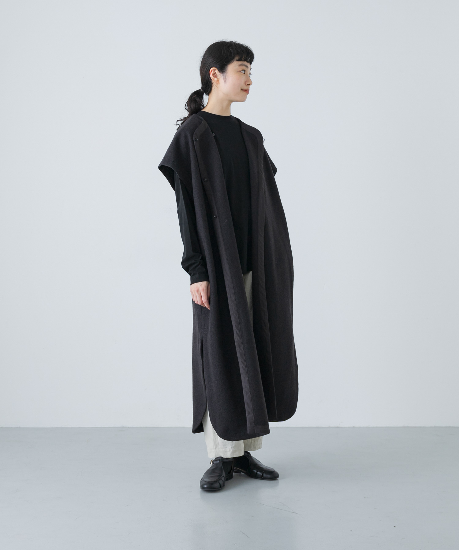ボタンを閉めるとワンピース風に着れて、開けるとジレとして使えるので1枚で色んな着方を楽しめます。
