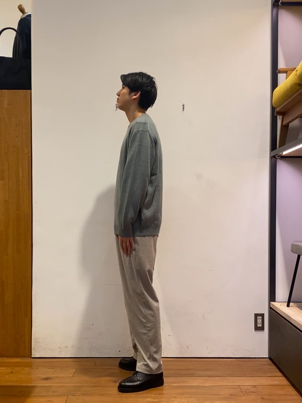 程よくリラックス感のあるサイズ感で、アウターのインナーにも動きやすく使いやすいです!