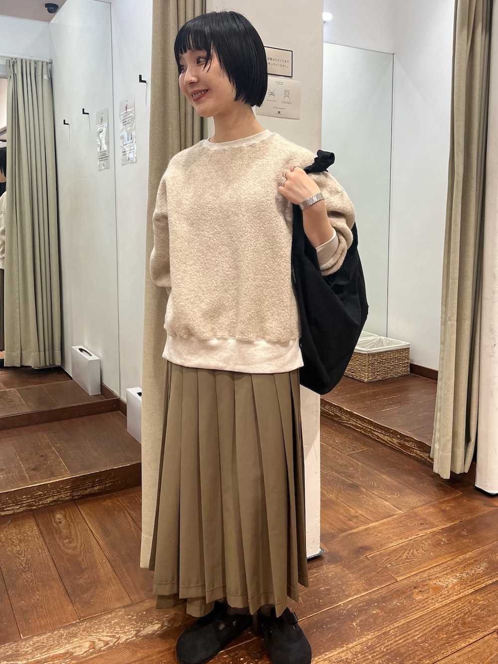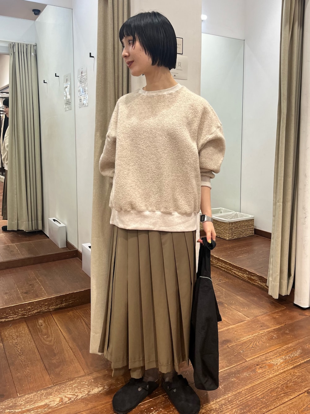 シンプルなプルオーバーですが、ボアの毛の雰囲気が際立ち大人の女性らしさが抜群です。