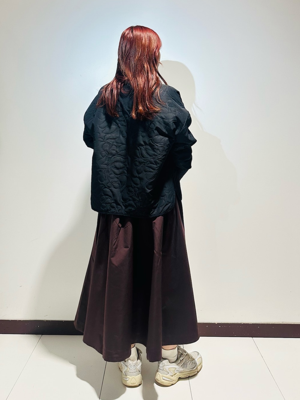 ウエストゴムで楽な履き心地のスカートはふわりと広がる女性らしいシルエット