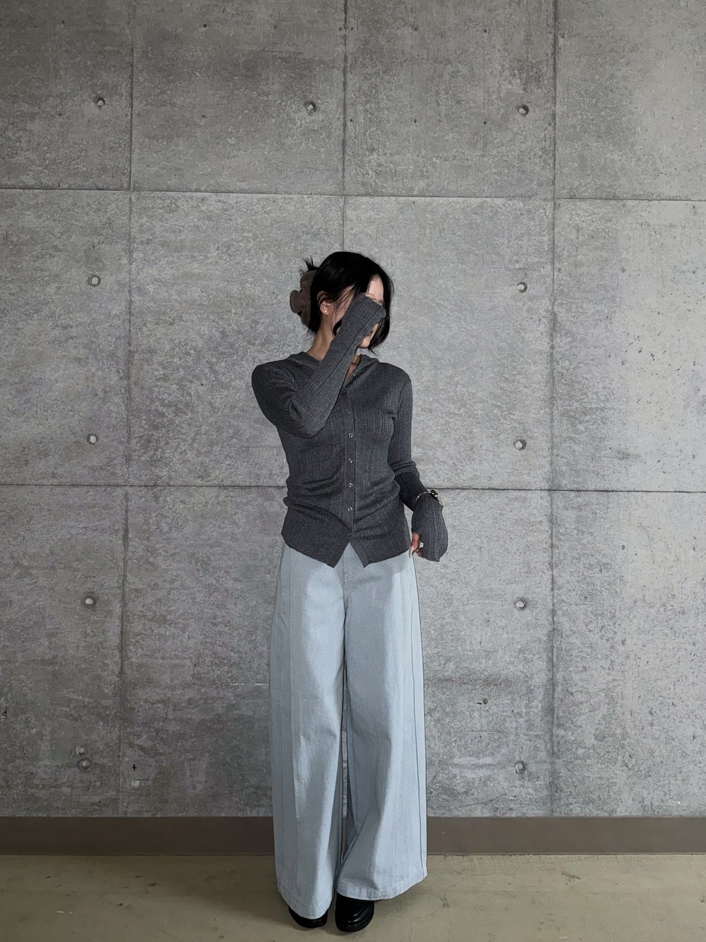 フリルが可愛いトップスはダブルジップになっているので、お好みで抜け感を調節できます!