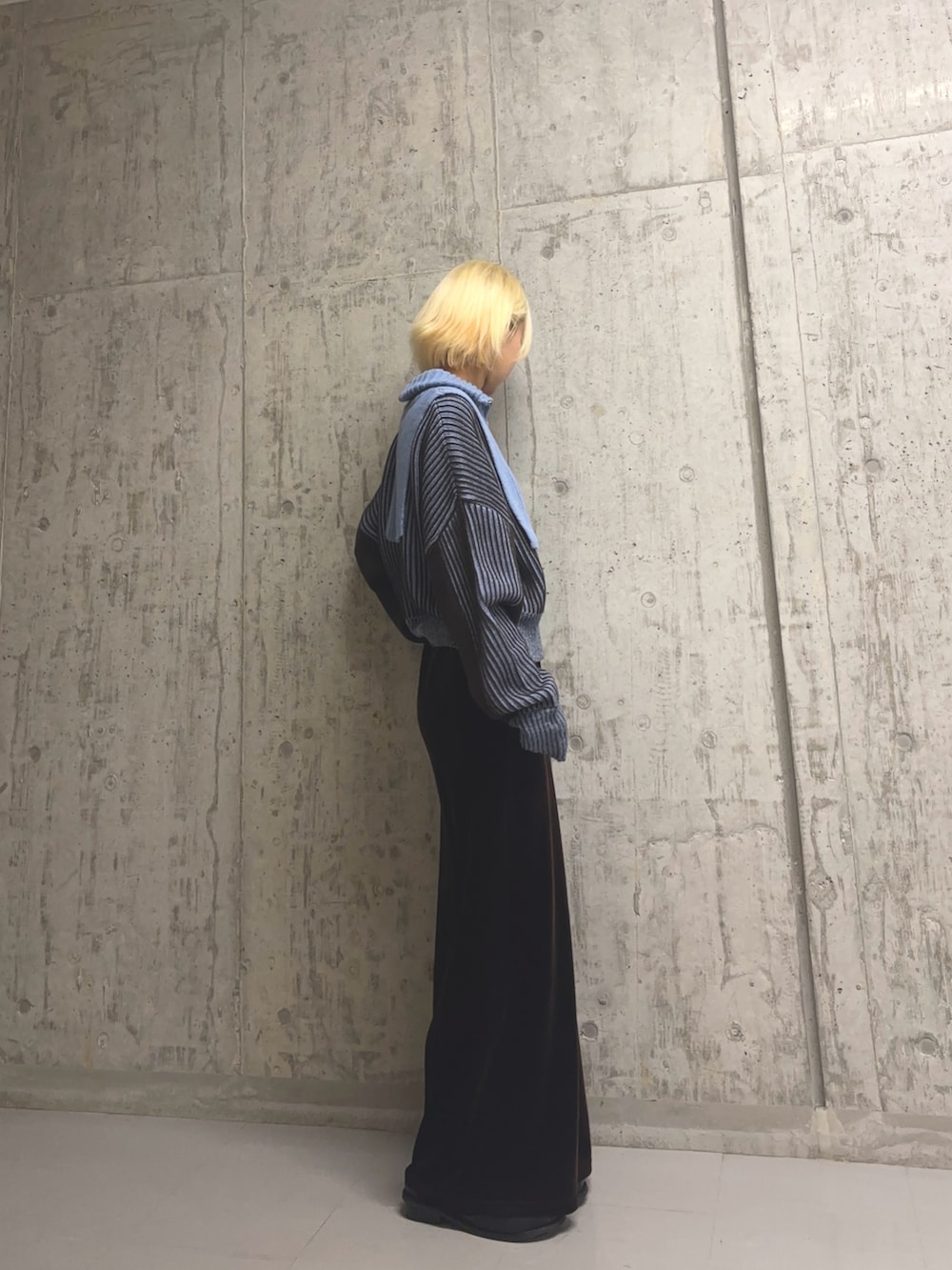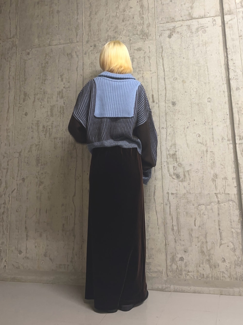 大人気のレイヤードハーフzipニットとベロアナロースカートで一癖ある大人きれいめスタイルにしました!