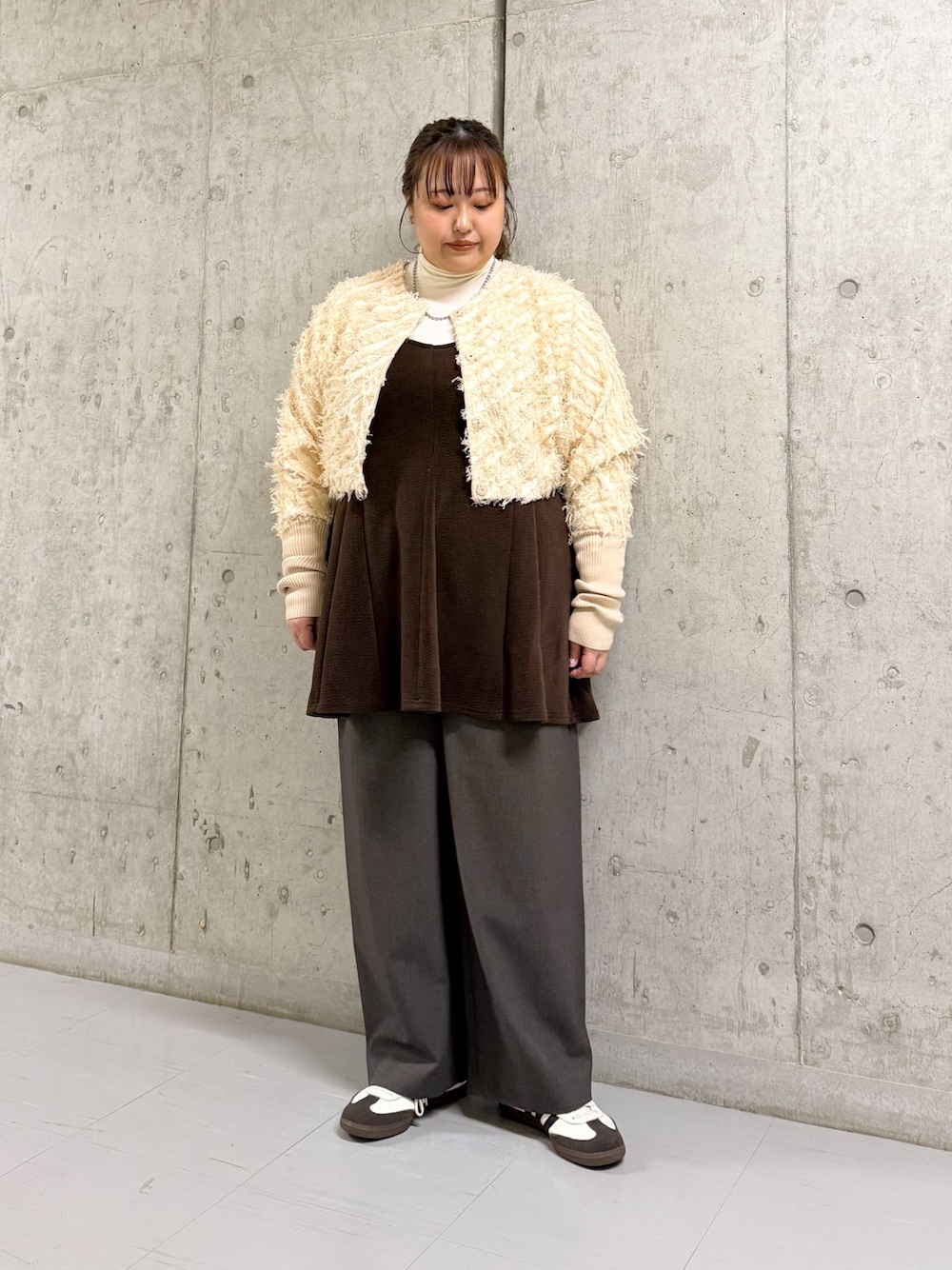オーバーサイズのデニムブルゾンにタイトめのワンピースを合わせることによってより女性らしいスタイルになります🫶🏻