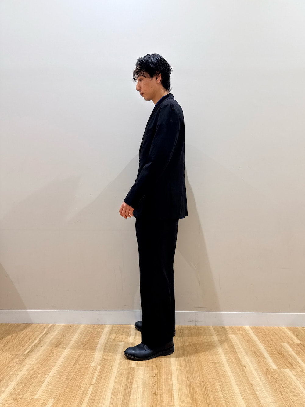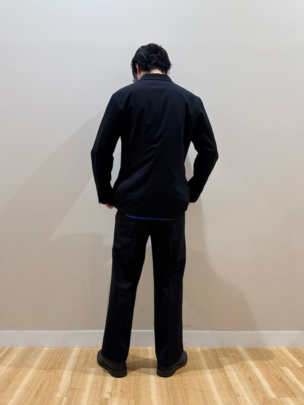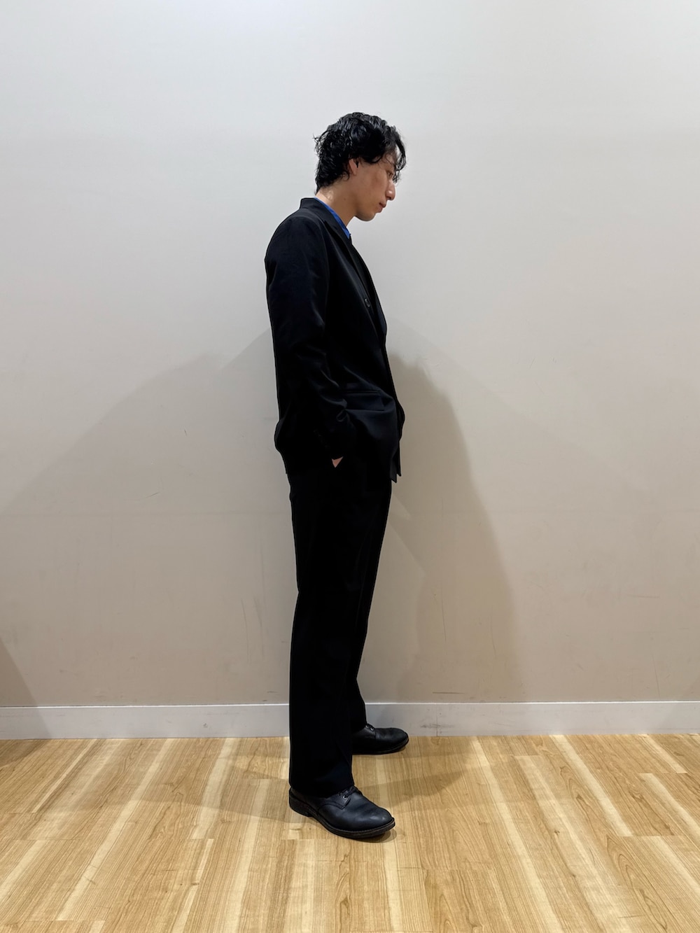 ブラックのセットアップで重くなりすぎないように、ブルーのシャツと合わせました!