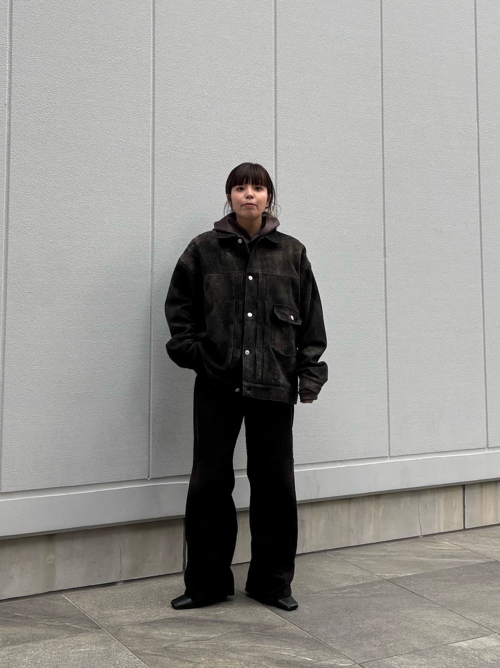 URのテーラードジャケットにLOTTOのラインパンツを合わせ、抜け感とトレンド感のあるスポーツミックスを意識しました!