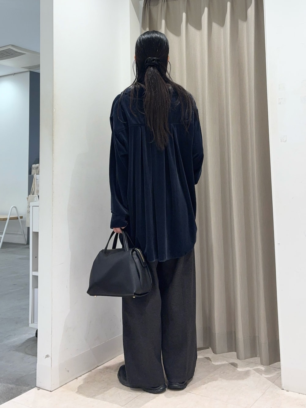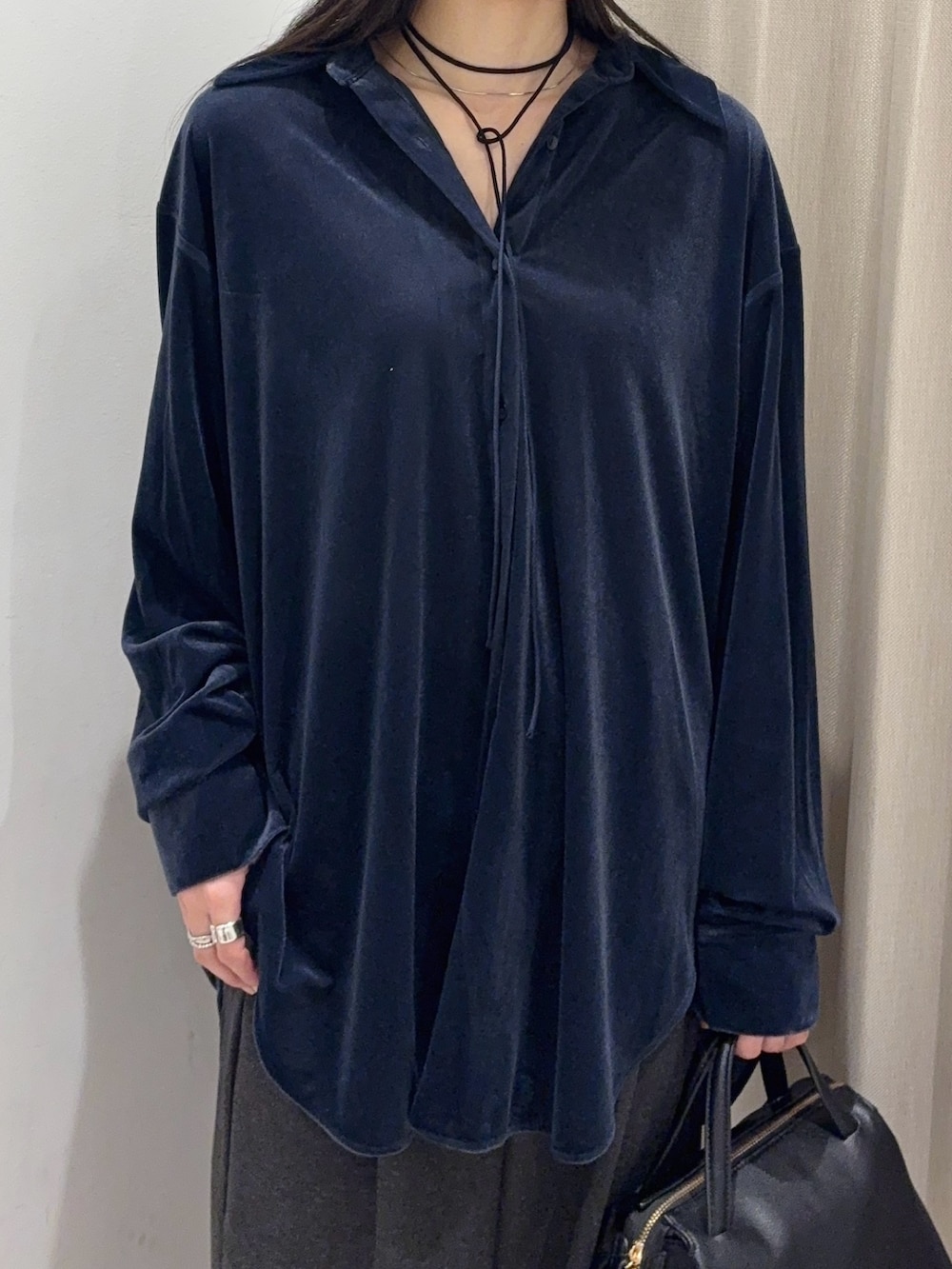 こちらのシャツはベロアの素材が季節感たっぷりで大人っぽく着ていただけます!