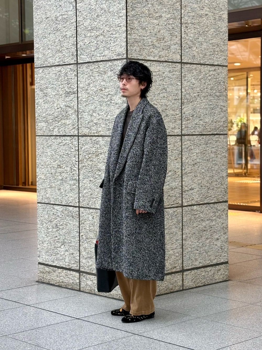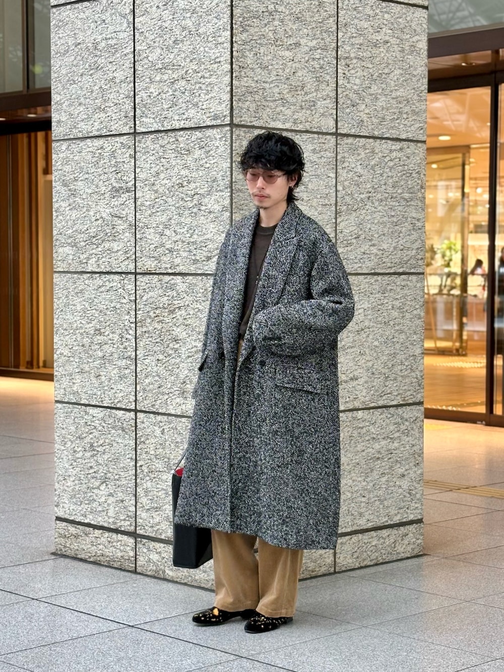 股上も深く、ウエストもドローコードのイージーコーデュロイパンツ。すごくいなたいいろ。グレーベージュの掛け合わせはかなりいなためにみえます。