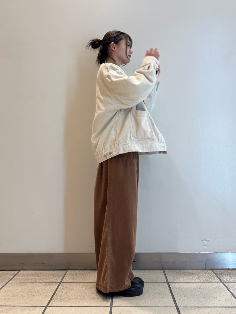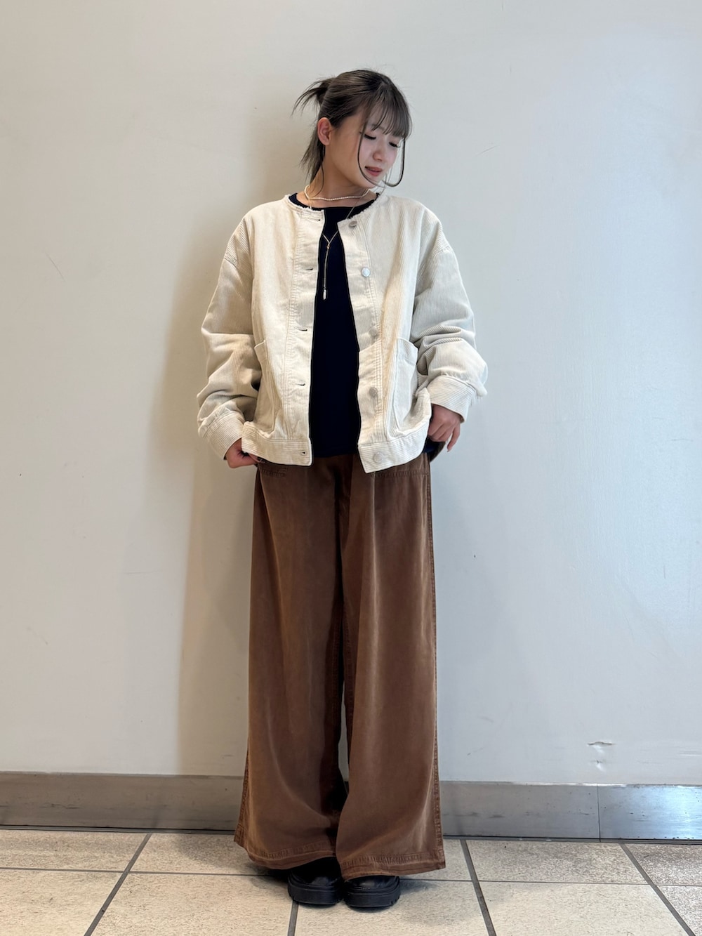 コーデュロイノーカラーJKは首元があいておりハイネックや今合わせている感じのものでも綺麗見えするのでおすすめです✨