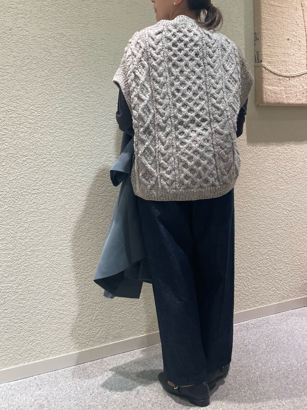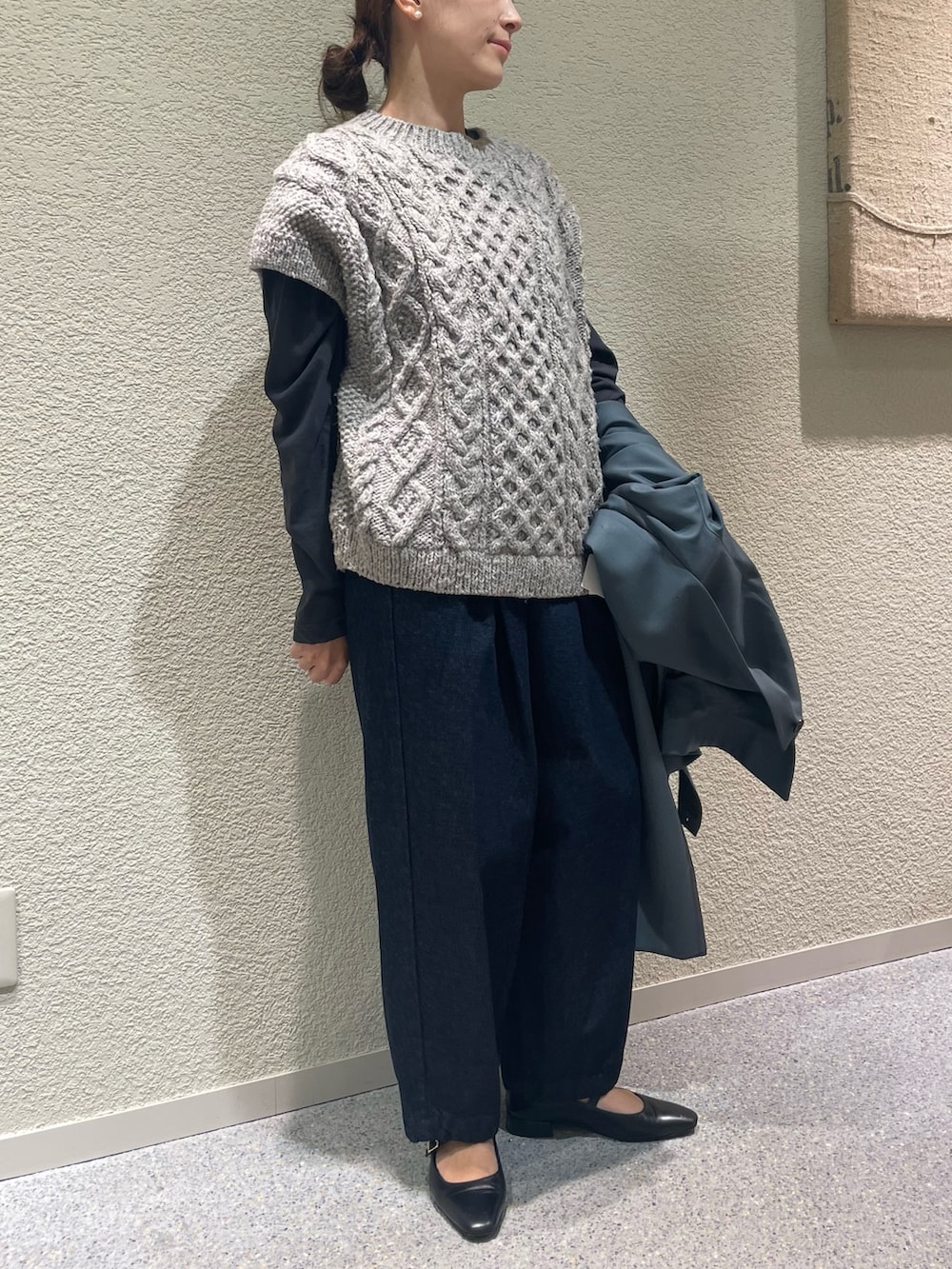 ペルーニットの新型、ペルーアランワイドベスト。肩にはしっかりかかって暖かいけどもベストのお作りがお袖も気にならず、主婦にはありがたいよね!とお客様ともお話しさせて頂いていました🙇