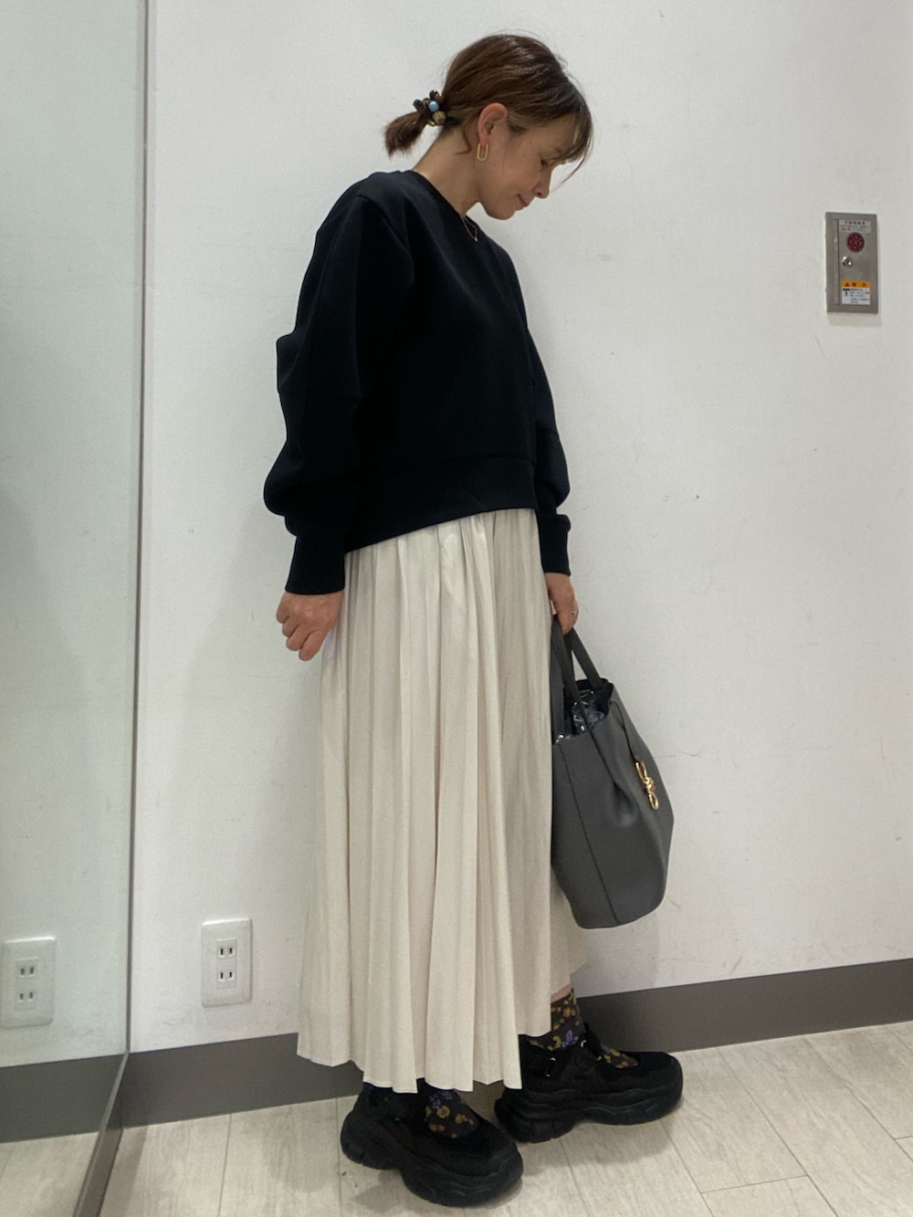 スカートはさらりと履き心地良く、ボリュームがですぎないので、細見えします!